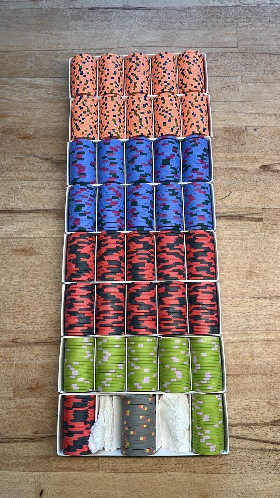 1) the colours on these chips, especially the 500, pop way more in person than in photos; really nice surprise.