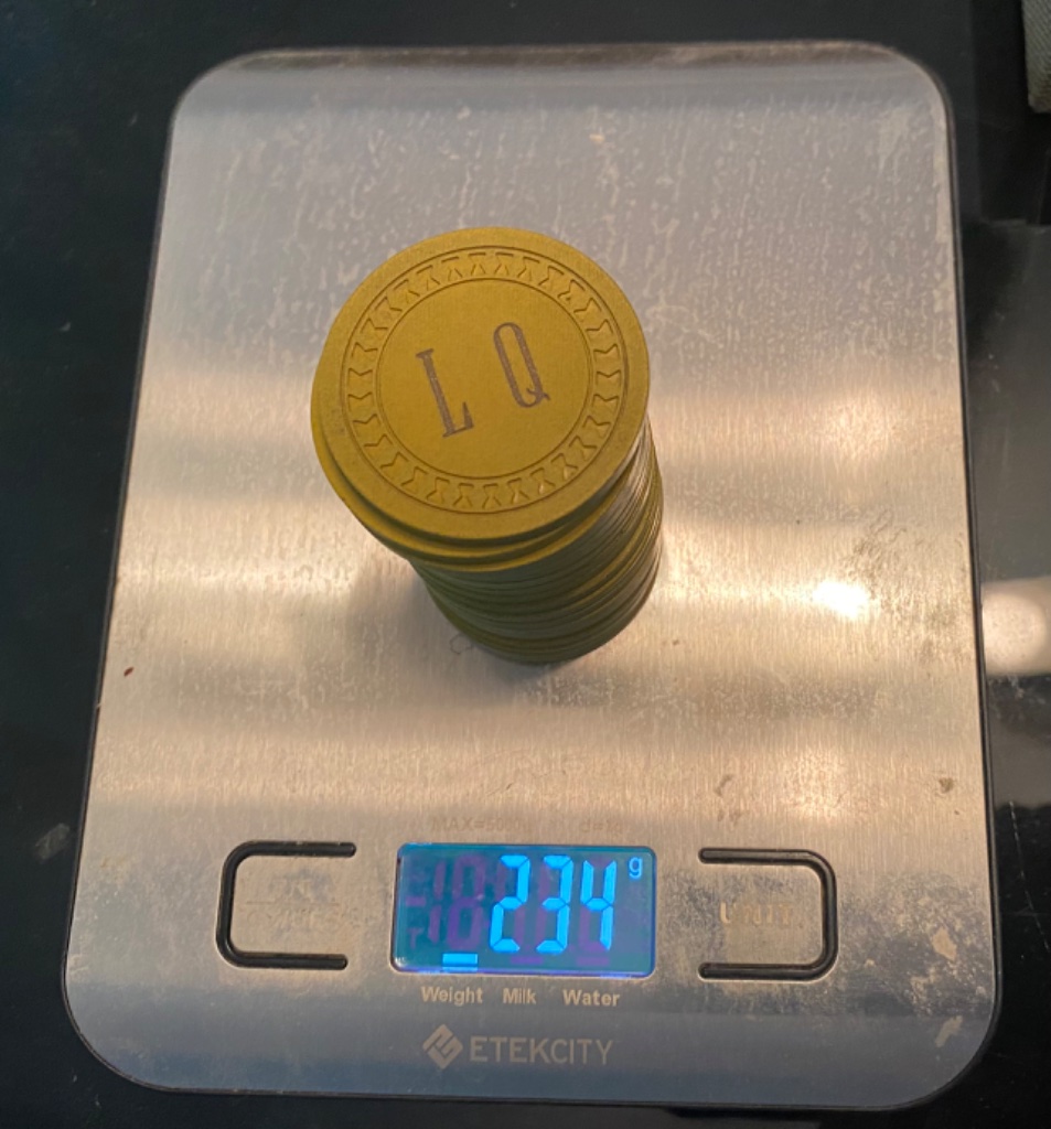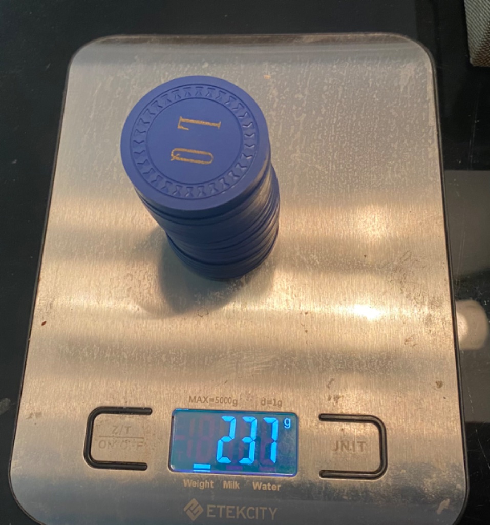 Below, I already owned the chip on the right, so that one is not new. It is included for contrast and similarity to my new chip! The new one is on the left. IHC, gray base color, gray inlay, and gorgeous edge spots. It does not hurt it at all to be from the same state as me, either. A beautiful single chip, worthy of admiration.