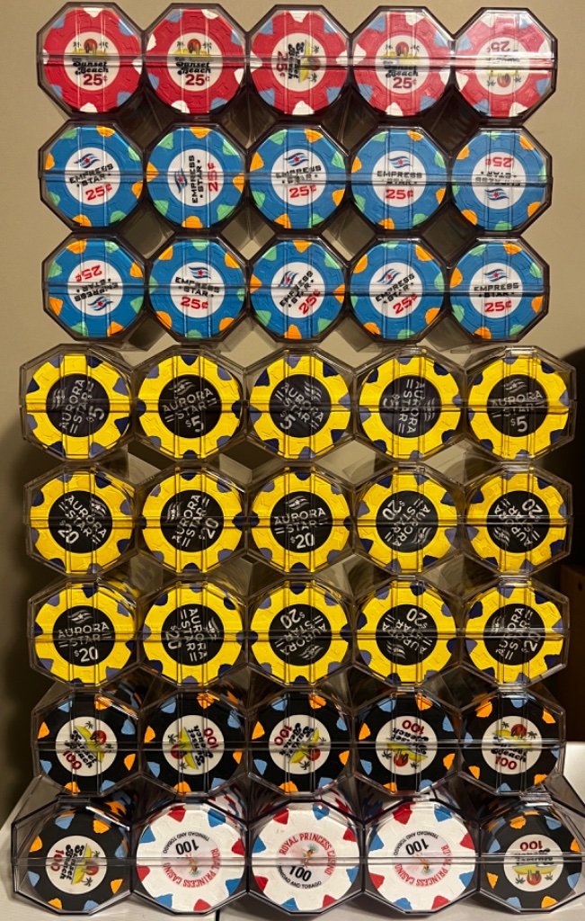 There are very few great GRAY casino chips out there. That are accessible anyway. For instance, nobody is going to collect a $100,000 Caesars Palace or Aria or Paris chip, which are all GRAY and quite excellent. The Binion's Horseshoe t500 THC is also gray, and fantastic, but expensive as hell now.