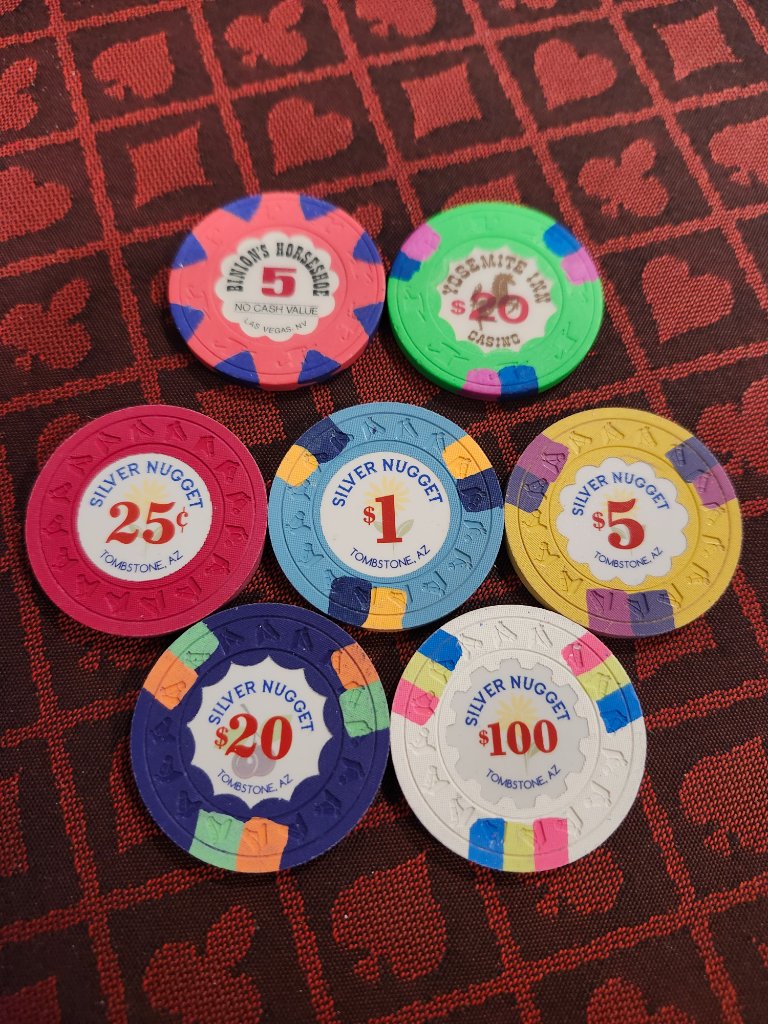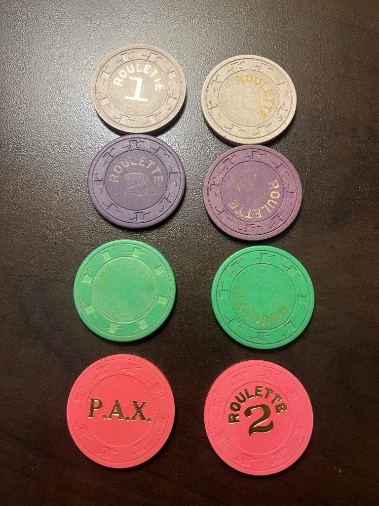 The greens are the most worn. Dont think leaded but will need a scale just to make sure. Are the Pax chips common? There years ago was a Prince Albert Exhibition so maybe from there?