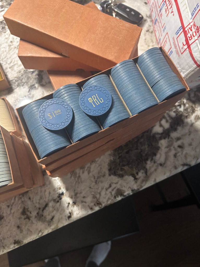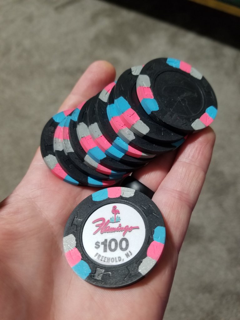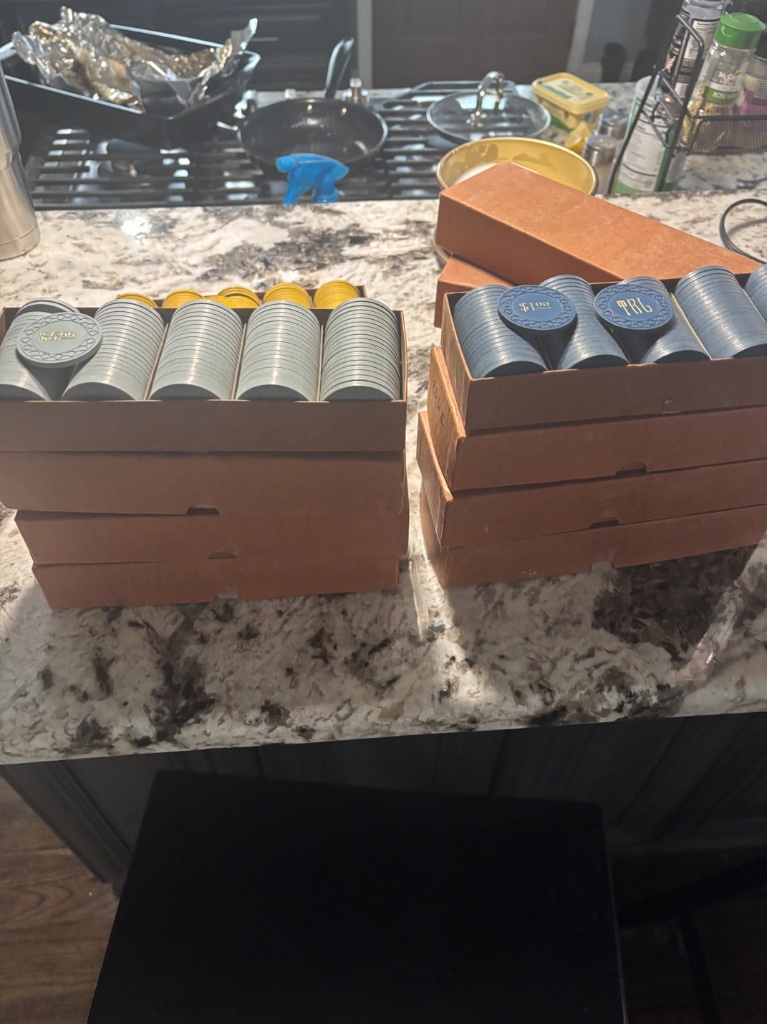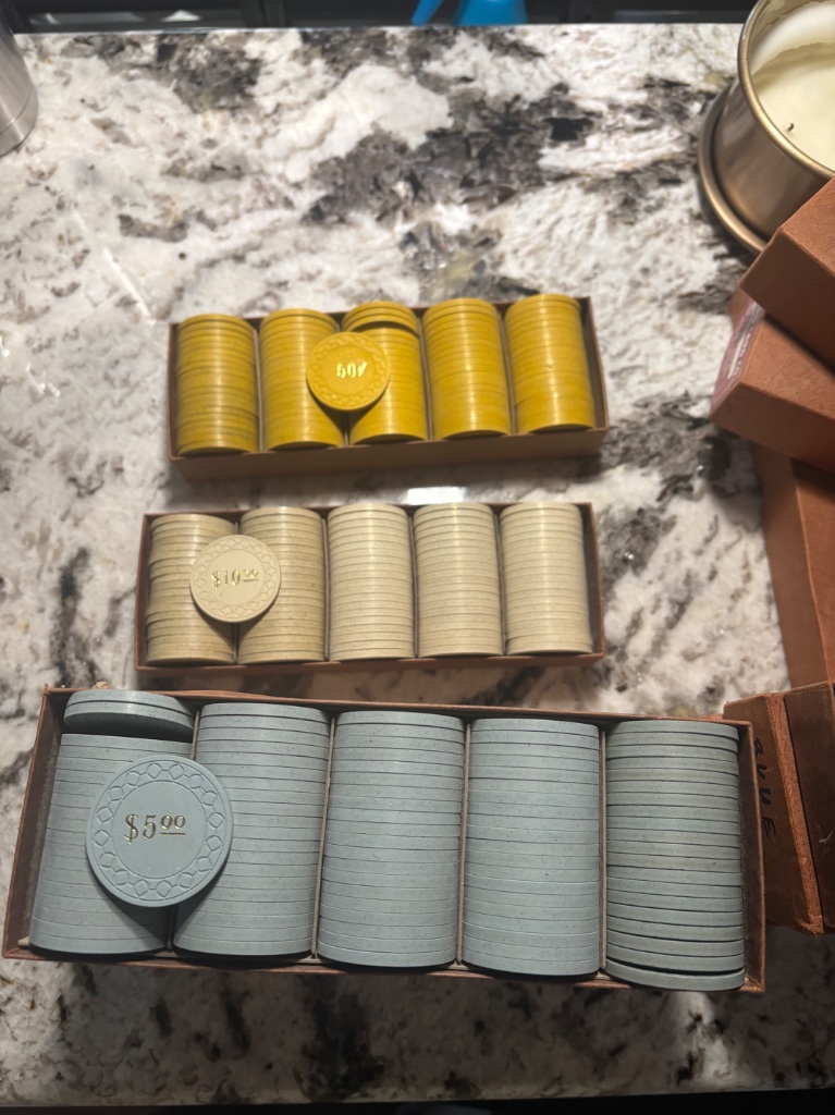 5. Tangiers Royal Palace tourney chips, version 1, (thanks to Cratty for recommending to eliminate the Lion from the inlay ) My son picked the Edge Spots for this set (I wished he would have asked about the 25 k though) pre mold (have other versions waiting on mold)