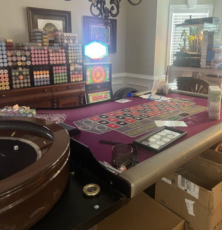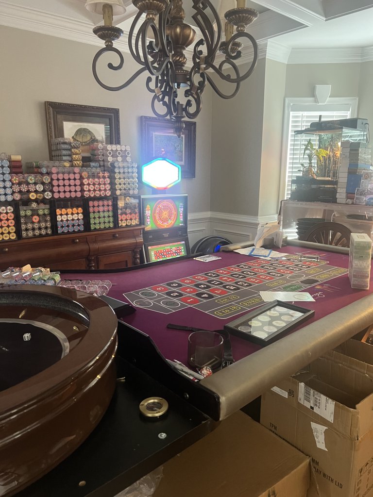 The dining room of course. Our roulette table gets more use than our dining room table.Love the chips, but sitting here trying to figure out where I can put a roulette table.