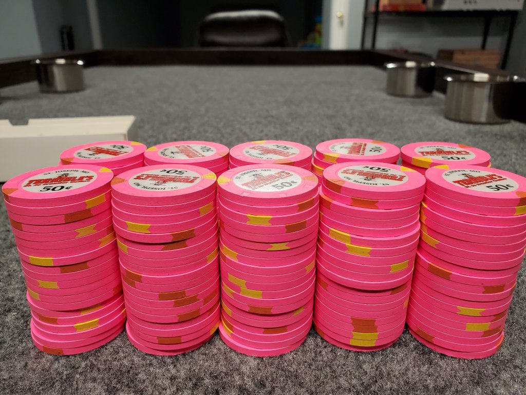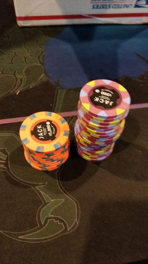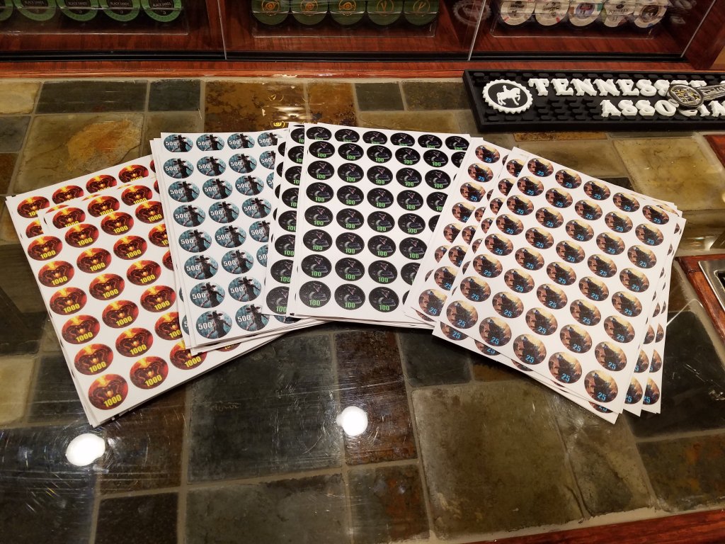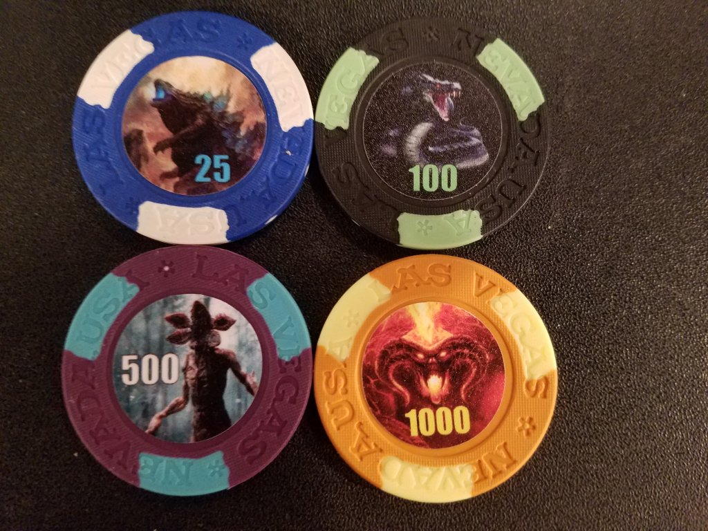 I've been playing cards with my boys more and more the past year or so, I thought it would be fun to design a set of chips together. We went through a bunch of different ideas, but settled on a movie/tv monster theme. I had an old set of Nexgens, so we designed a new set of labels for them, and @ABC Gifts and Awards hooked me up. Thanks Gene! :tup:
