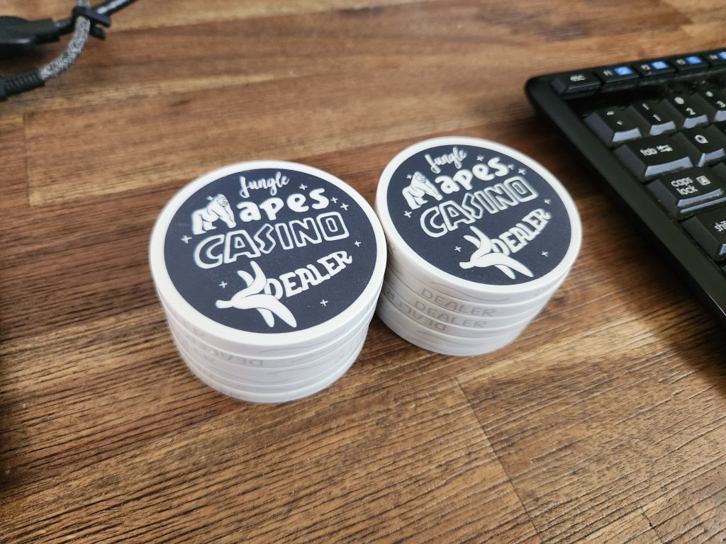 Also the logo has a different color on the plaquesDont feel bad for the dealers. They were tipped generously. At the VIP tables where these were in play there was at least 3 staff watching including the dealer plus the eyes in the sky.