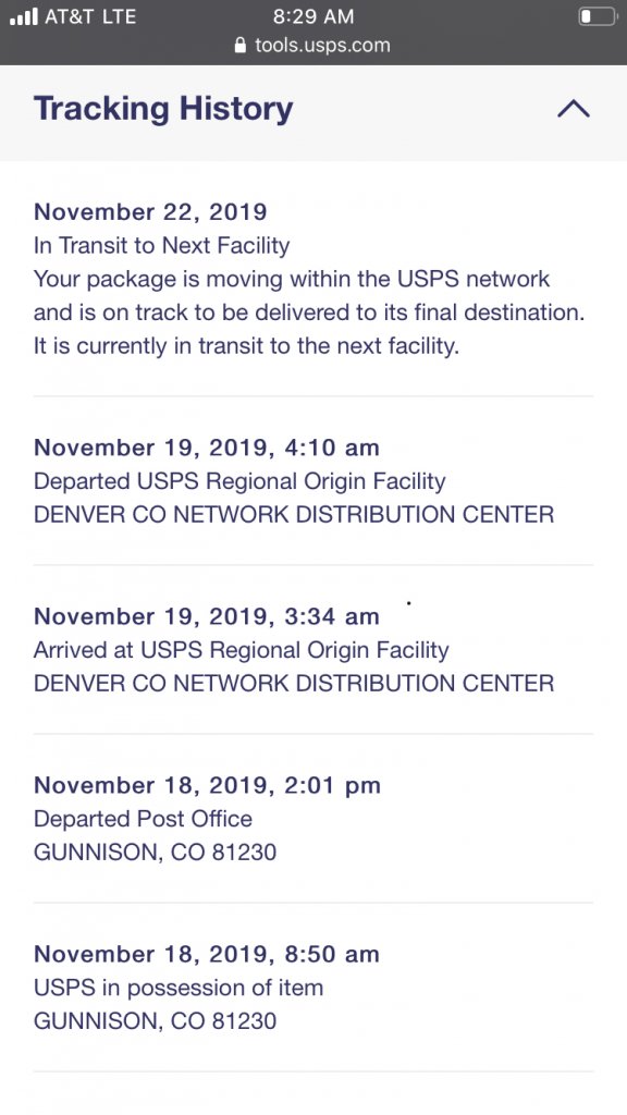 So I think Denver USPS is running slow, I've had several delays myself coming in and going out this week.