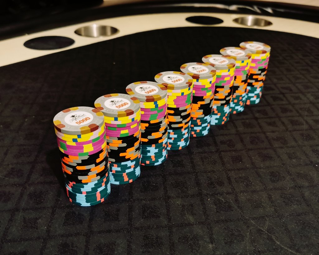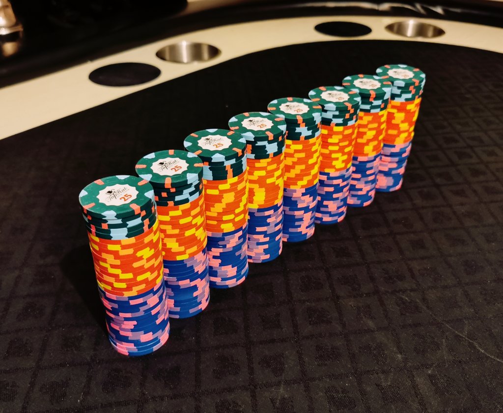 Well, at first, the breakdown didn't seem great, but I knew I these chips HAD to be mine. On further inspection, they are literally perfect for my eight-player game; both 1/2 cash game and T10000 freeze out.