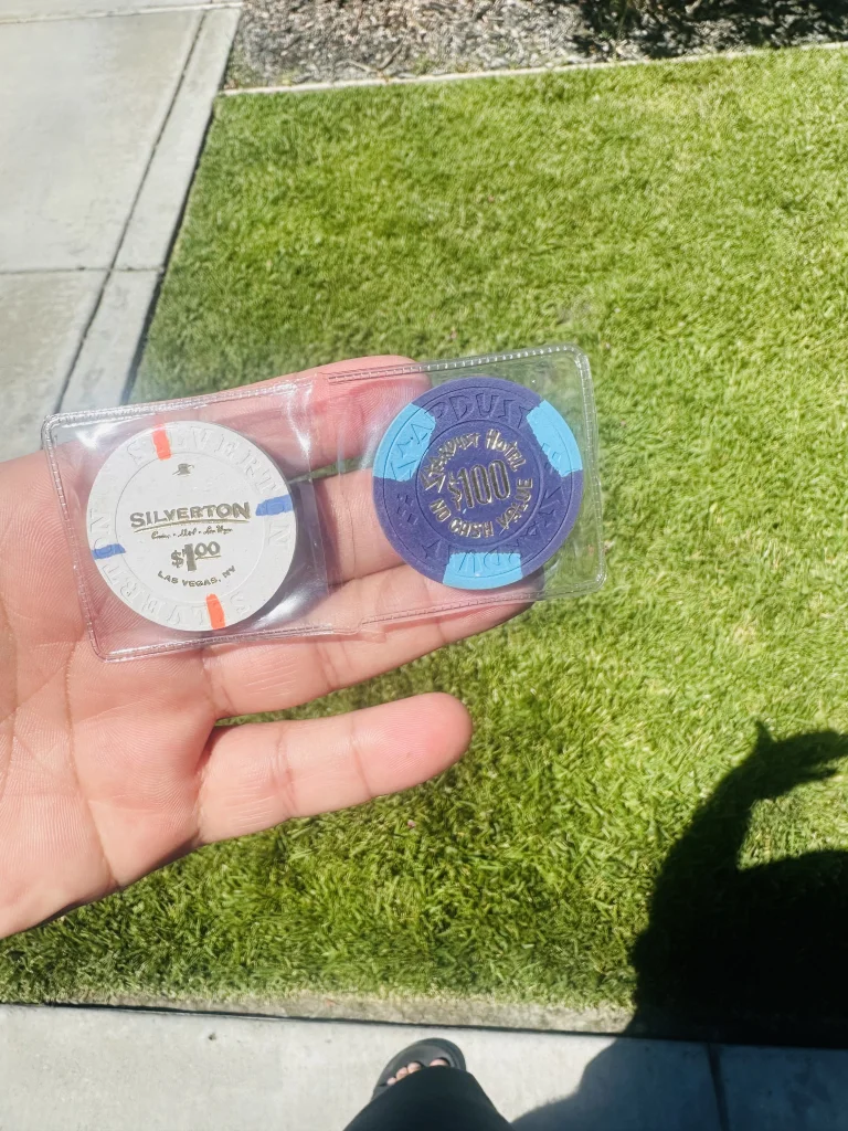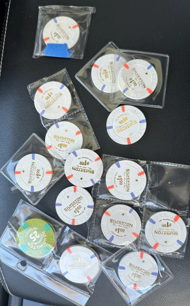 The Hotel Sahara sliver strike is a happy find. As is the Aladdin coin. The THC spotted chips are fantastic and will up for sale soon.