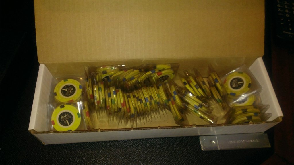 They came from Jim at the chip room - they were packaged fine - I found them 2 years after they had been shipped - it said post pics of opening packages. I did, when I opened it they fell out like that - jim had like 100 chips per row stacked in there. When I ship I'll he sure to check the forums - thanks for the tip.