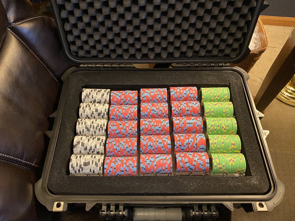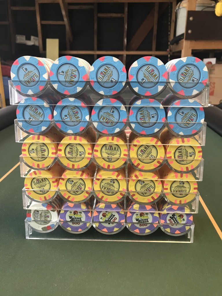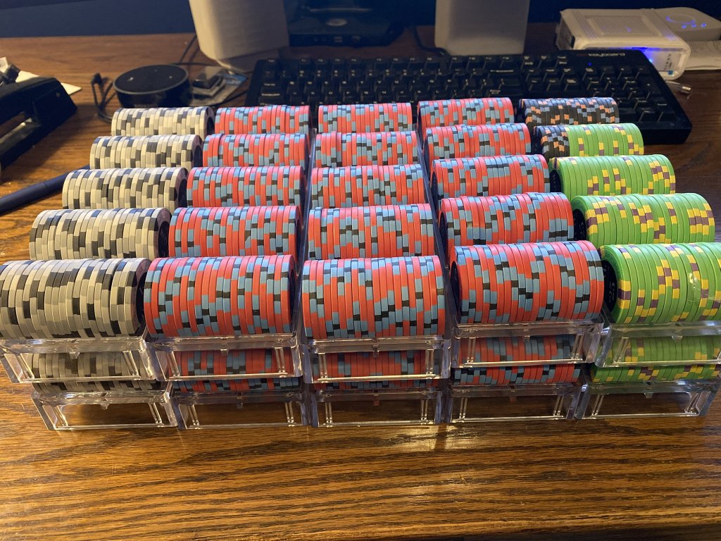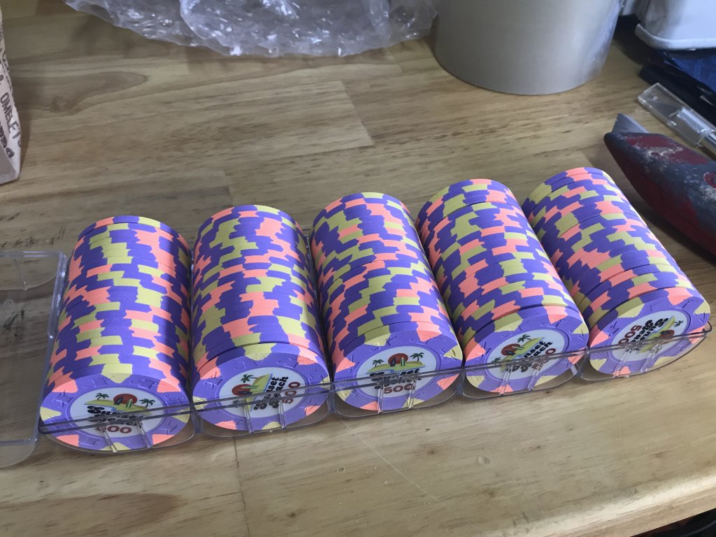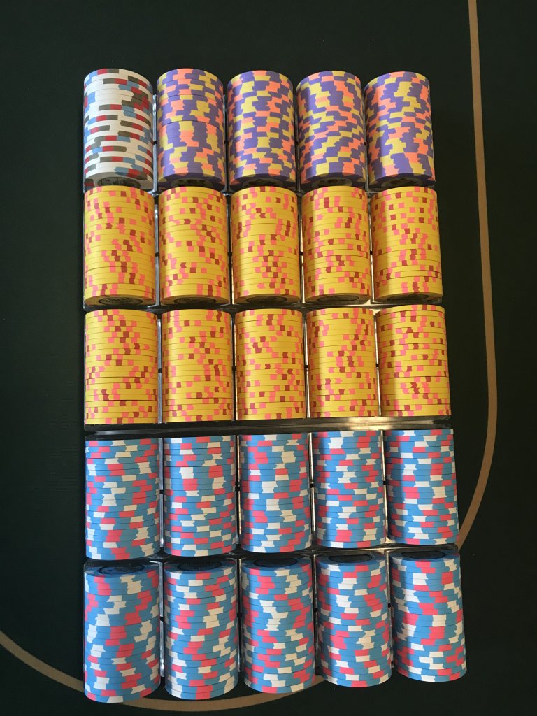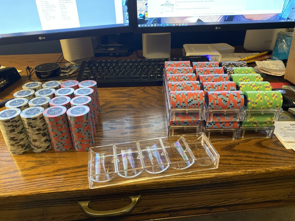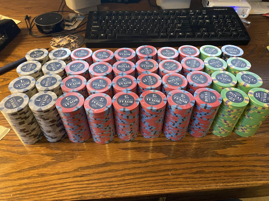 One of my regular poker buddies told me he was thinking about buying some chips. He was looking at some ghastly sluggos on Amazon. I told him friends don’t let friends but cheap slugged chips. After discussing his budget, I ordered a sample set of Royals for him to look at. He decided to trust me and today they arrived.