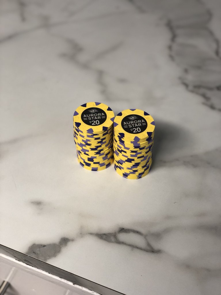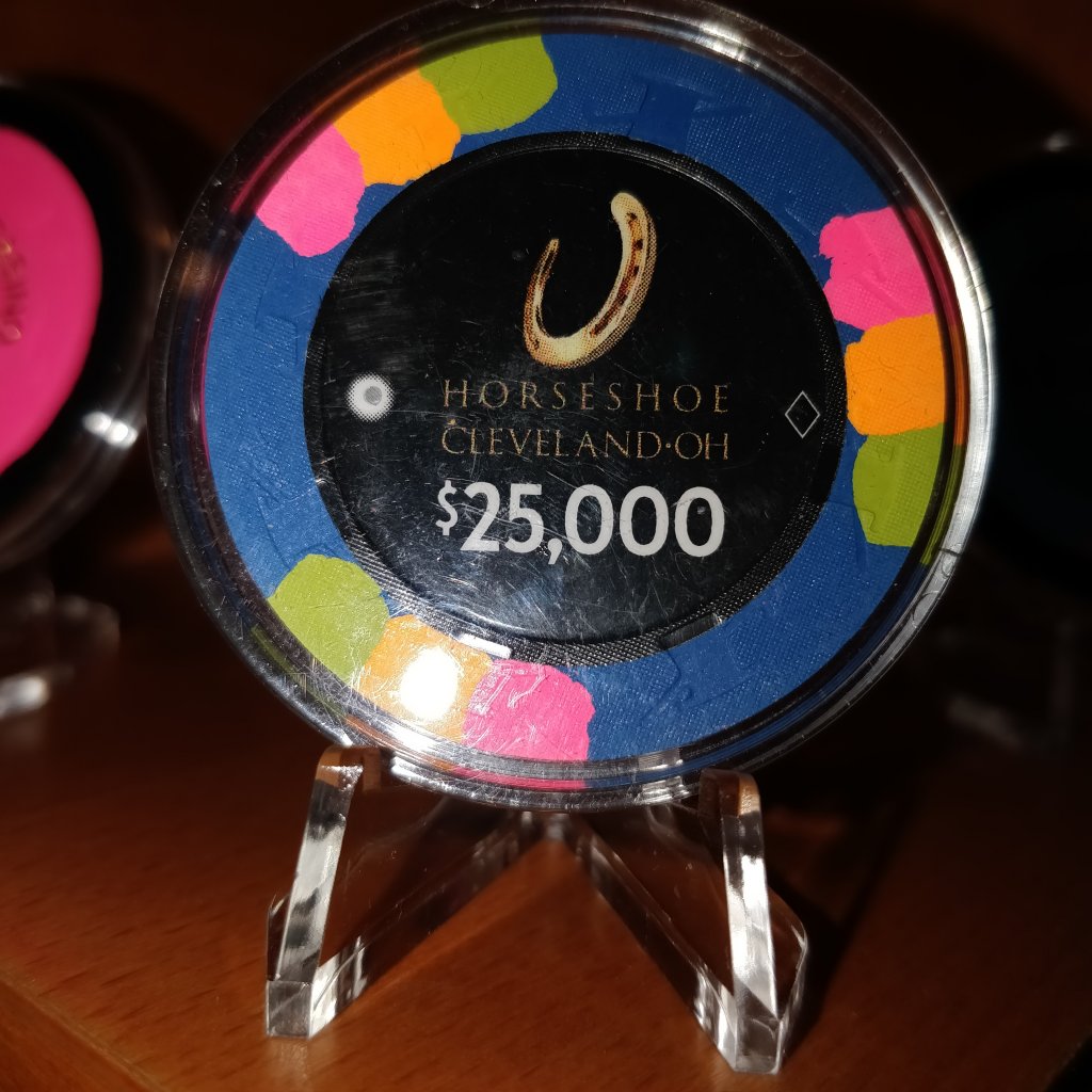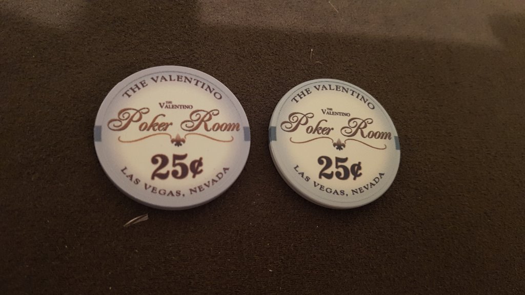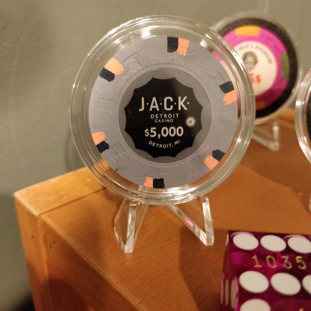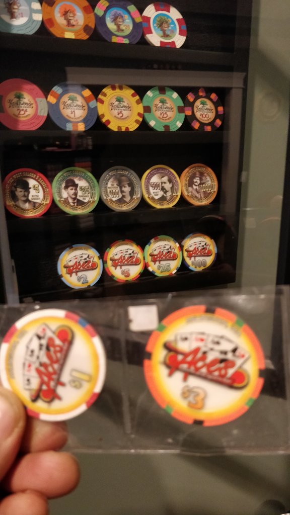 I had recently received a bunch of singles and ended up with an incomplete sample set of Aces Casino cash chips. Very cool chips I thought. I had a few extra $25s and Brie offered to trade me the $25s for a $1and a $3.