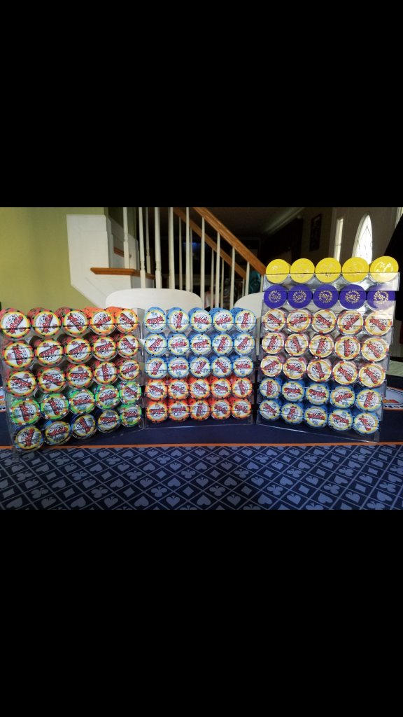 Thanks to @saleen121212 for the wicked Tortuga cut cards and DB. Love the pirates theme. He also sold me a couple cool singles and thanks for sending them in a capper. Nice touch Cam! These chips will adorn my poker room ledges on easels. As well, the user @sheikh617 was super kind to respond to a wanted ad of mine and he helped me round out my barrel which was missing chips. 2 to be precise. I had put them up for display but needed the have the full barrel. Total OCD to the max. Thanks so much Mohammad! Sweet ass chips!