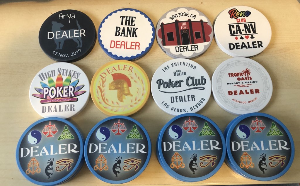 Great Button day. The DB’s on the top row were sent to me courtesy of the great member @Kid_Eastwood The second row of buttons were Buttons I didn’t have that were new to the BRPOKERPRO site. The Bottom row are custom buttons based off the Lucky Symbols theme BRPOKERPRO had. They are all 60mm Buttons.