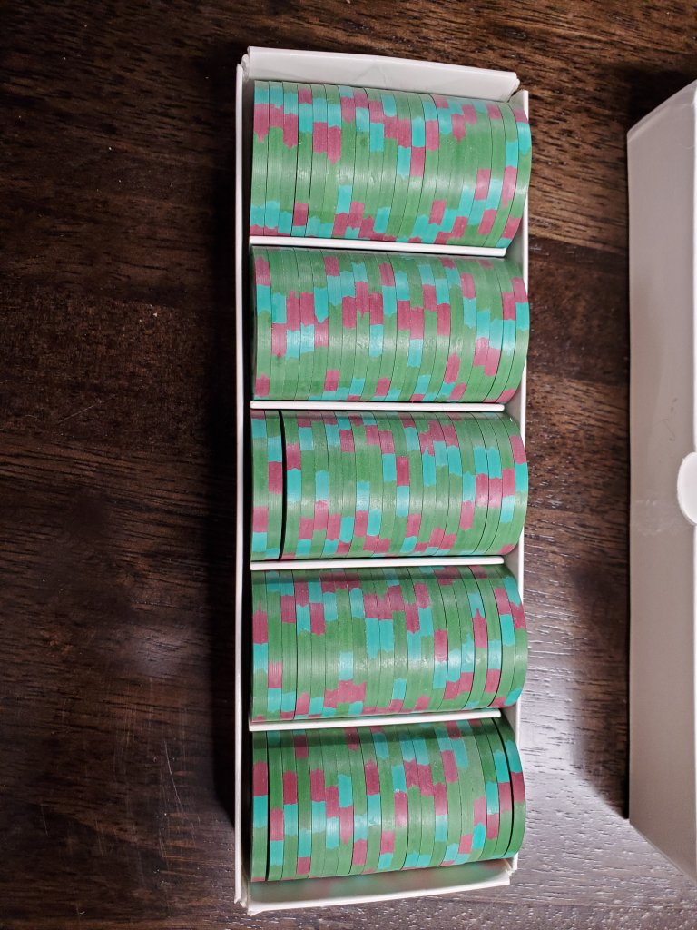 Photos will never do these justice I am afraid. I have a sample set and they are an absolute favorite. I need to play with these someday!I’m a little late to post my newest acquisition. Got these 10 days ago, meeting up with @liftapint and @Racer96 (our international chip mule). Set is 700 chips, and I’ll be looking to add on. My absolute favorite hotstamp cash set. I can’t believe that I got them.