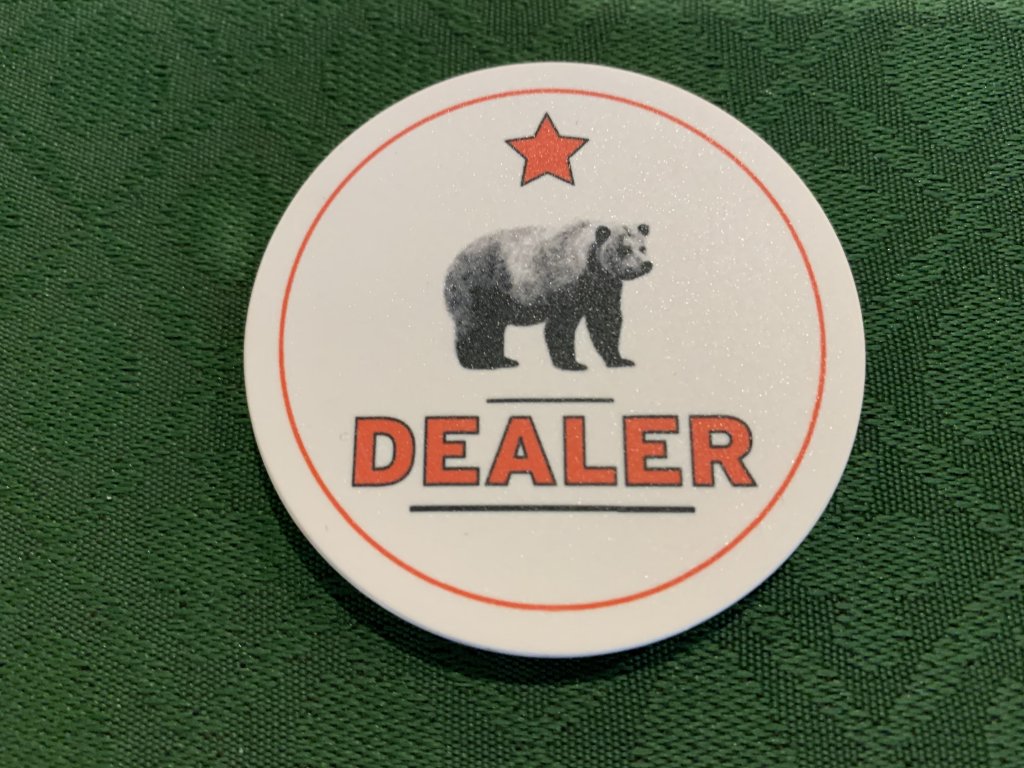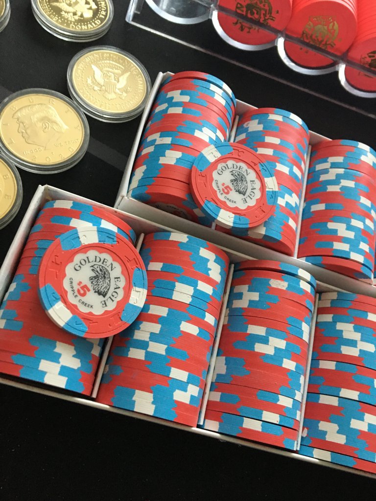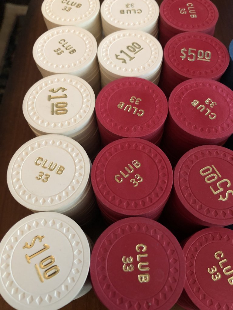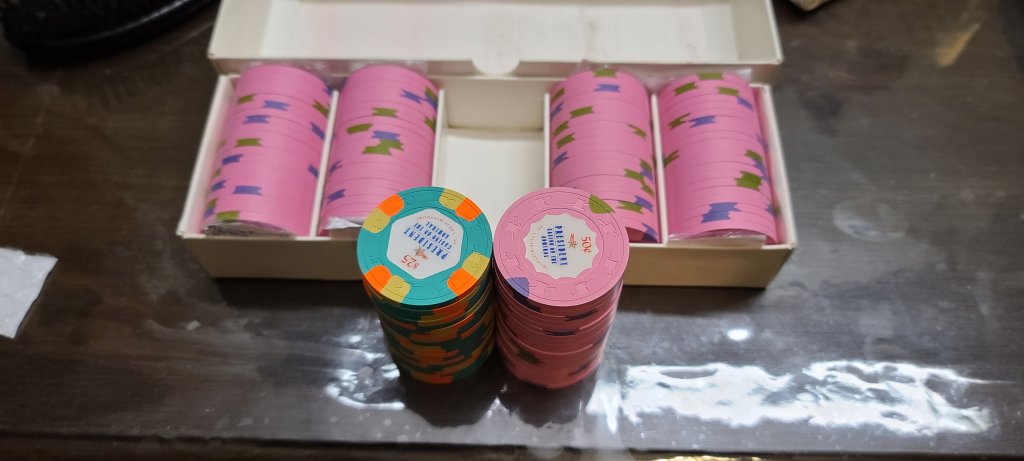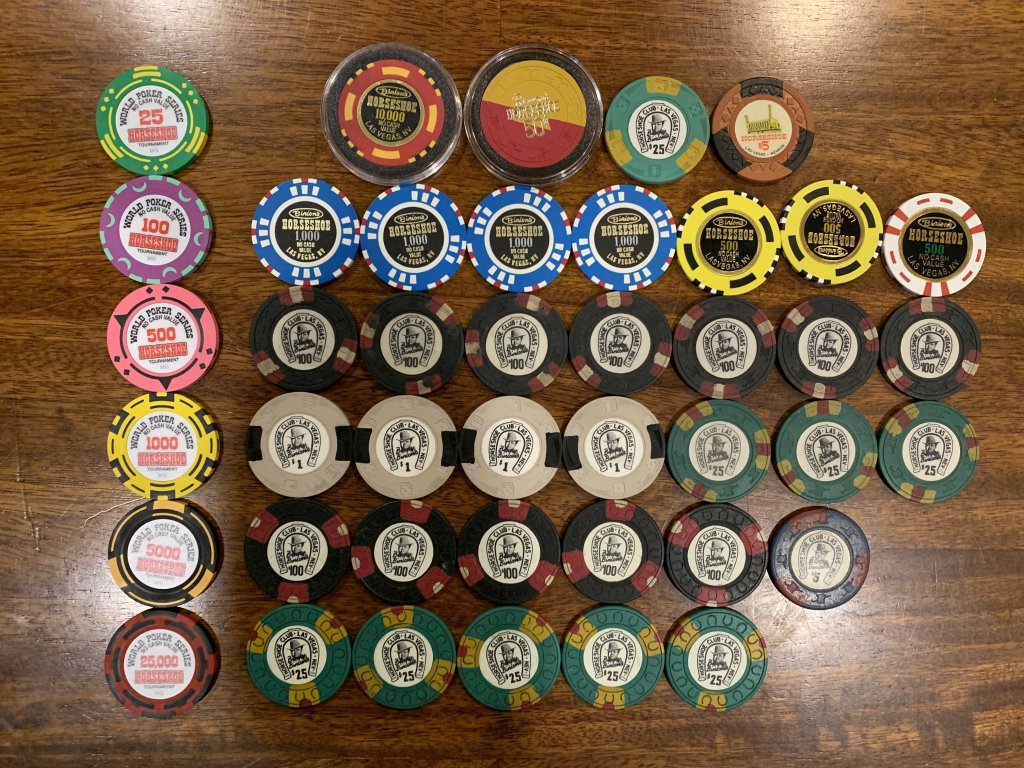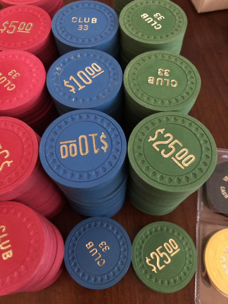 I love that particular Bud Jones 10k, most of the ones I come across on eBay aren't the red/orange + yellow like the one you have. It appears to be the same version of the 10k chips used in this picture from the 1998 WSOP ME:
