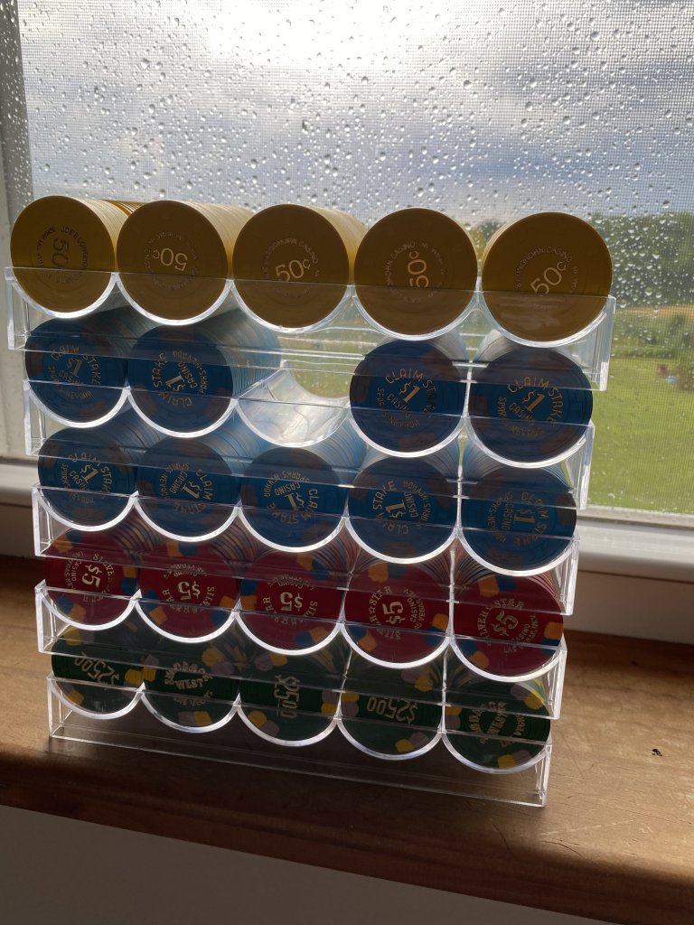 The other part, and I can only speak for myself, but since my home game went on hiatus, I've decided to try to finish up some projects. I have a few chips that I may sell, but not until my "replacement" sets are complete and usable. I'm basically not chipping real hard since I can't get new chips in play.