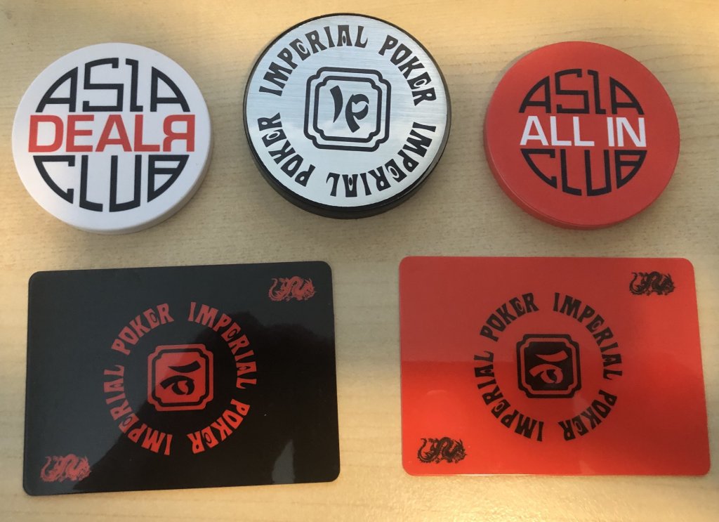 I got a very awesome package from member @jbriod today. He had won an All In Button/Lammer from one of my giveaways. He knew I collected Dealer Buttons and decided to send me this assortment of buttons and cut cards from his new Asia Club themed design he is doing based on the now defunct Imperial Palace in Vegas. Just simply awesome. John even sent me a nice letter to go with the assortment. What blew me away is he sent me a button that just came from the @PokerChipsDesign buy and that was so nice like all APs stuff. I love doing the giveaways and I don’t do them for stuff like this, but it is GREAT when this does happen sometimes!