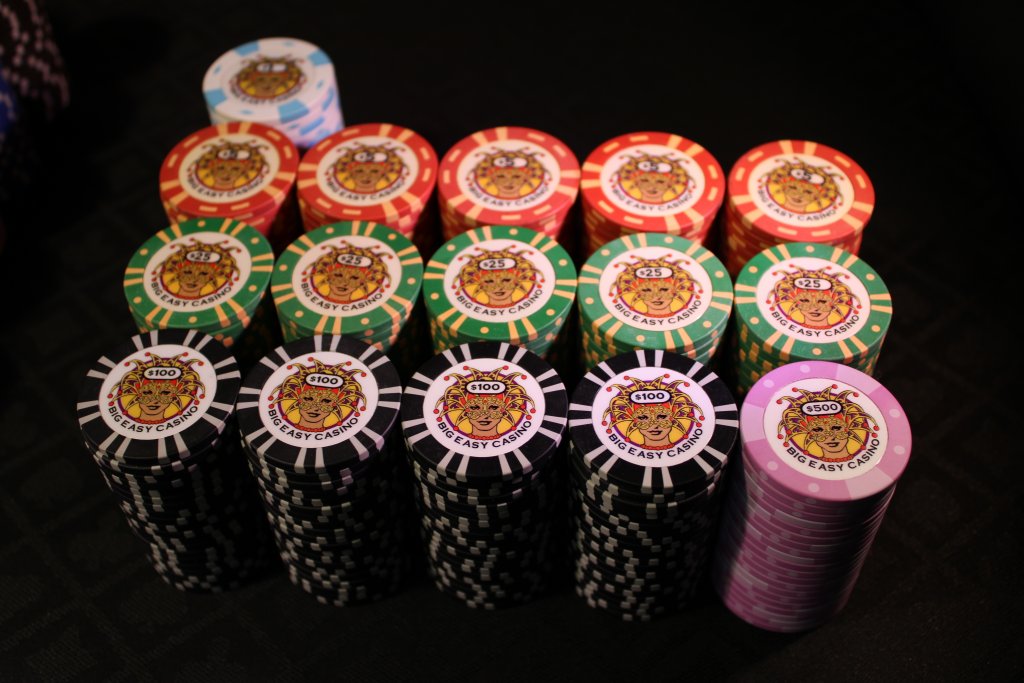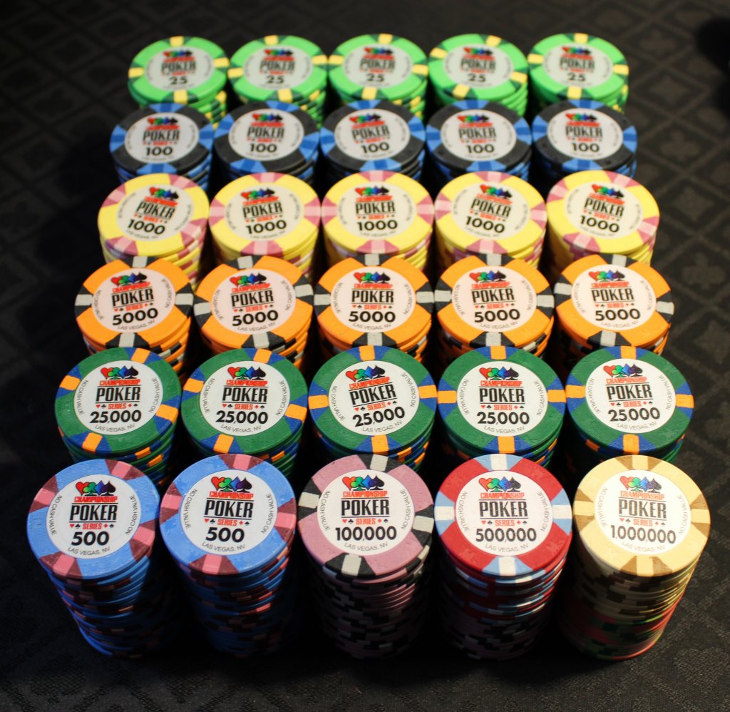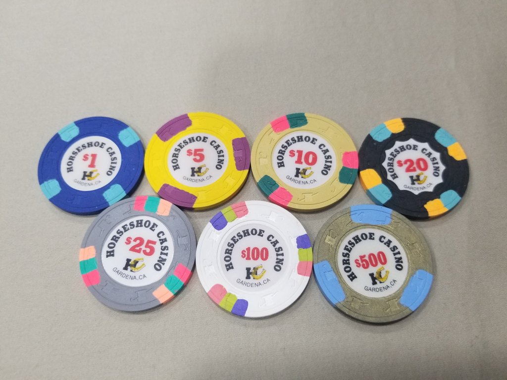 Paulson later reused the color/spot combos from the origonal Horseshoe-Gardena set to manufacture home market chips, including non-casino-bound Horseshoe sets (with round inlays, shown in your photo), and in several other fictional location sets such as Casino de Mexico, etc.