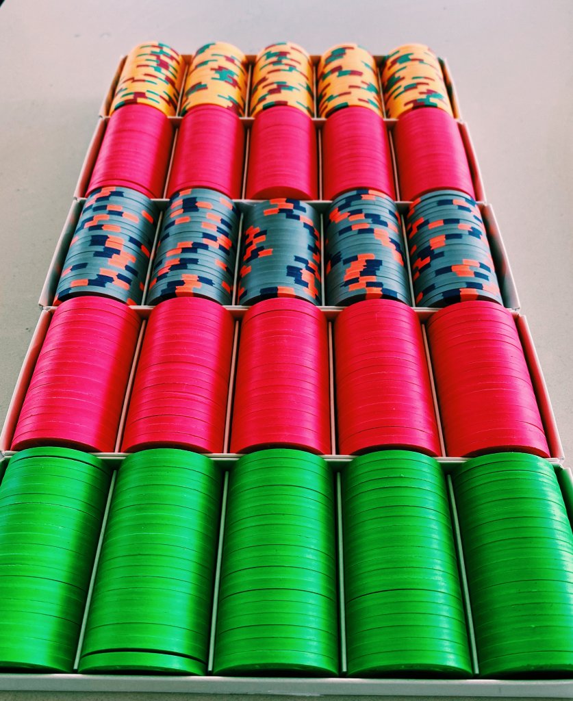 Added some chips. Now it’s just too much teal. I’m trying to make the Harbor Lights $100s as $1s. The other chip will be a frac. Which chips don’t fit?