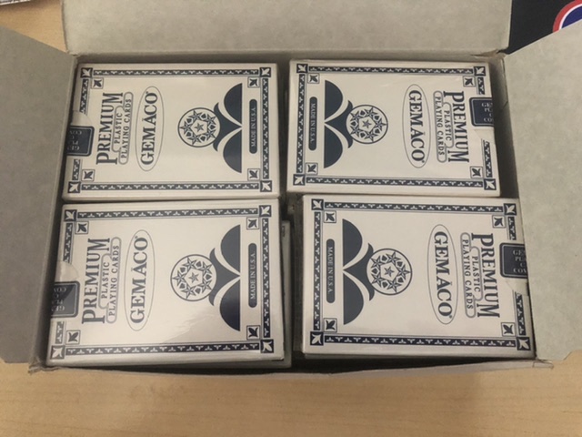 Got a Mystery Box from Seattle today. Not really a mystery as it was a box of 12 unopened decks of Blue Gemaco Superflex cards. I got them off of eBay and scooped them up right away. The price was too good to pass up. Unfortunately the lady sold the Red Decks like two weeks earlier. I was able to scoop up 6 Red Decks from that buyer and the 6 other red decks went to other members on here. Fortunately all red Decks are back paired with their counterparts. Unfortunately all decks are spoken for and there are none available.