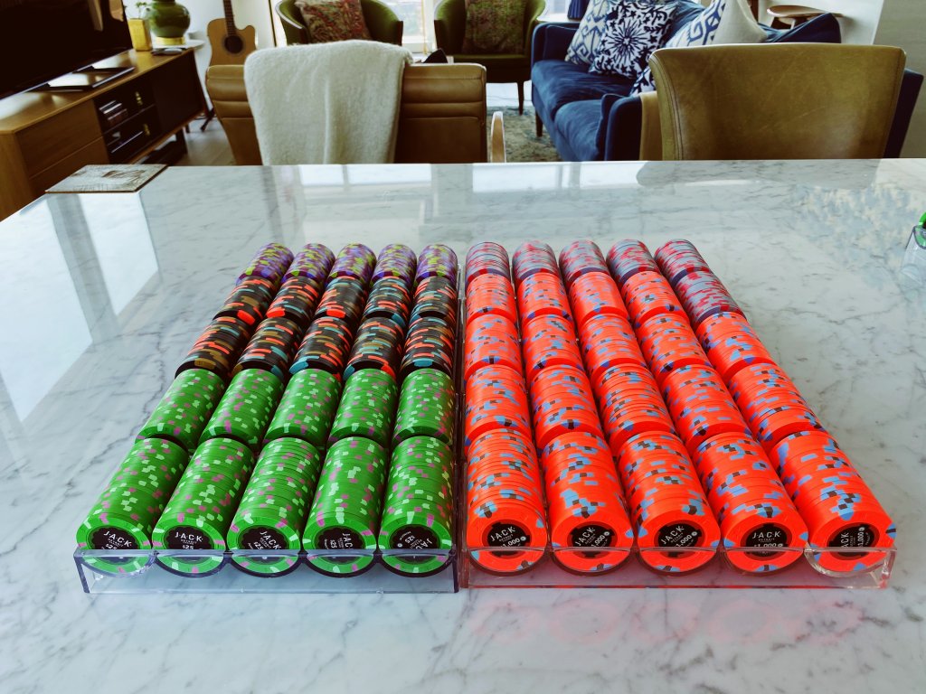 Also a huge shout out to @PokerChipsDesign for making some of the coolest dealer buttons I could find for my cash sets.