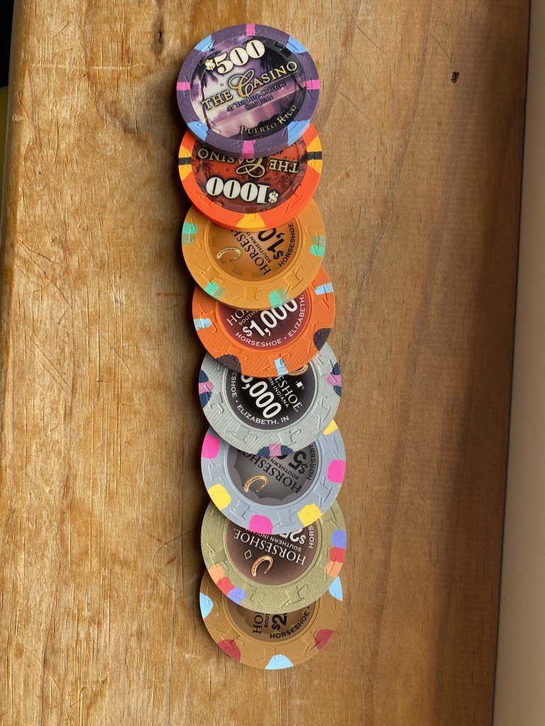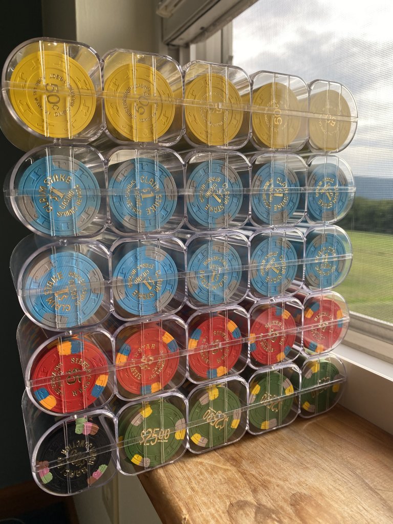 One Claim Stake $25 down, 19-79 to go! Easily my favorite $25 chip and love everything about them; the watermelon colors, inserts, and inlay. I believe it is leaded as well.