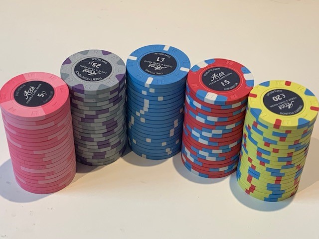 I guess I should explain a little bit of history on this one. ABC had a sale back in March and I figured okay, I'll buy a set of the DDLM's, I tried to mirror the GPI Monaco set as well as I could, with one exception. I changed the orange chip from $10 to $13.13 because I figured for Halloween, it would add effect. I dropped the 13 cents because I thought "no one's going to want to carry that kind of change around" and it took off in popularity. It seems so obvious, Also, tbh, with a $25 chip, a $13 isn't that hard to make change for (two orange = one green ($25) plus one blue ($1))