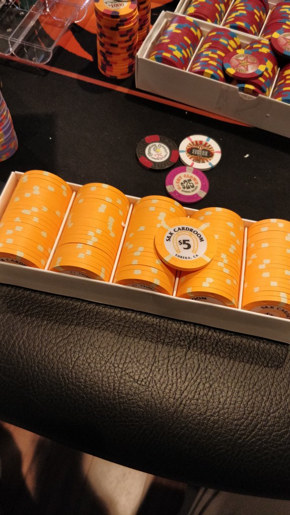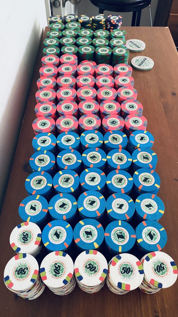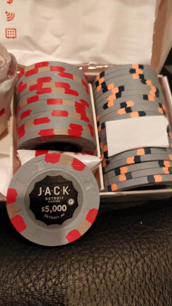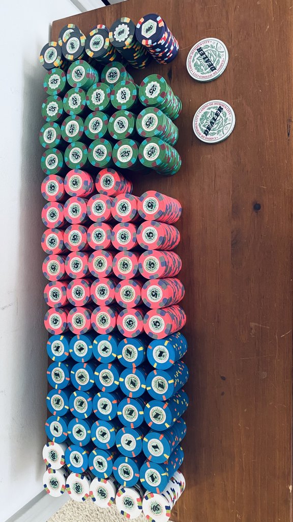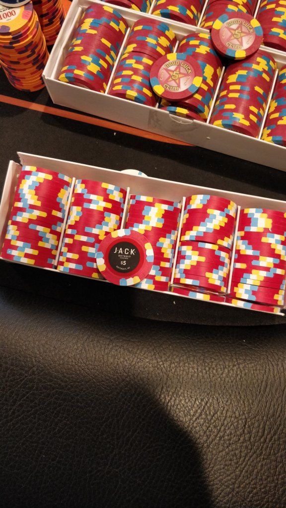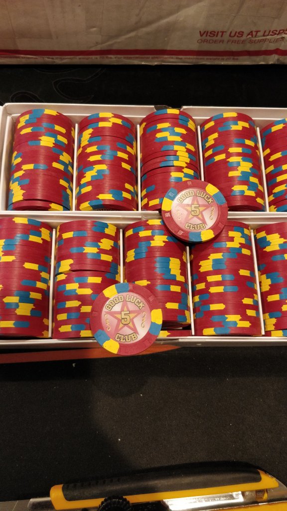 I also got these 2 racks of Good luck club 5s. Thanks to @kaimat for the cool trade. I plan to use this chip as a relabel in a future custom RHC cash set. One of the racks was short a chip, and I reached out via PM to @Kyle and he was so nice to me, he sent me a few extras and wouldn't take my money! Thanks so much brother! Amazing gesture! I got my extras..View attachment 572700