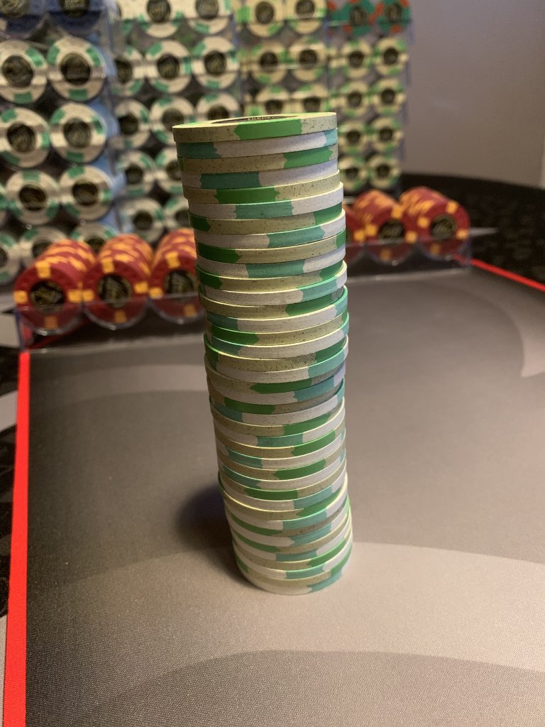 Alternating in a stack then a splash pot. Close enough for me but just enough off to tilt a couple of my players :LOL: :laugh: