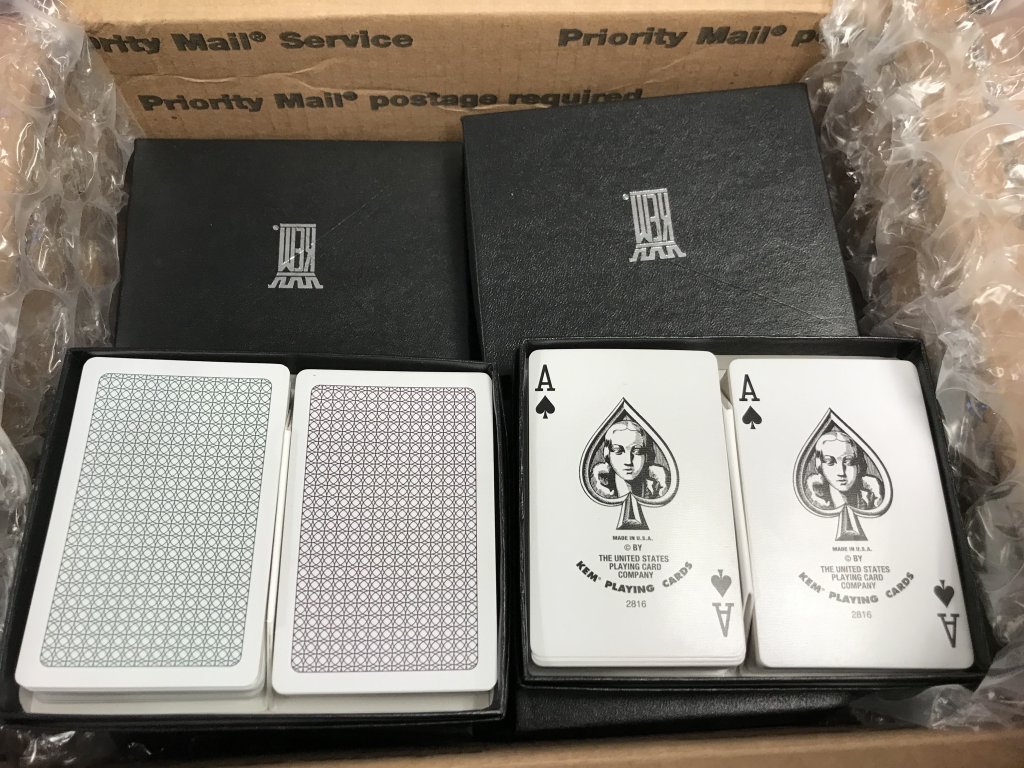 Sometimes you can find good deals on eBay. Listing was for 16 setups of casino used Kem cards...so I was hoping maybe half were in good condition. I actually got 17.5 setups and all but 3 decks are in PRISTINE condition. Wow! Even those 3 decks are usable for other games, but won’t hit the felt. I paid $3.60/setup!