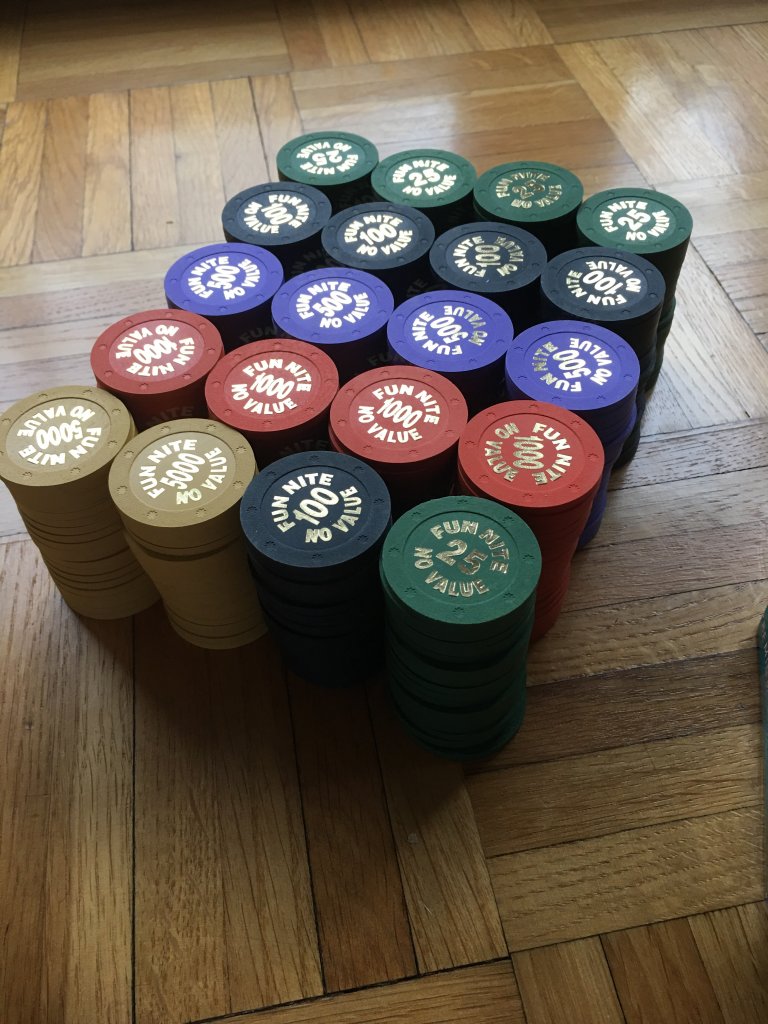So sweet AK Chip.. In my down time I've started tracking BCC Fun Nite chips back to see what I can account for. I am assuming there were 11,000 made, as that is a number I could find for the original group buy. Have not gotten too far, but guessing I'll see where this set went. Know the T5's are rare too. Do you mind telling me roughly when this set existed?