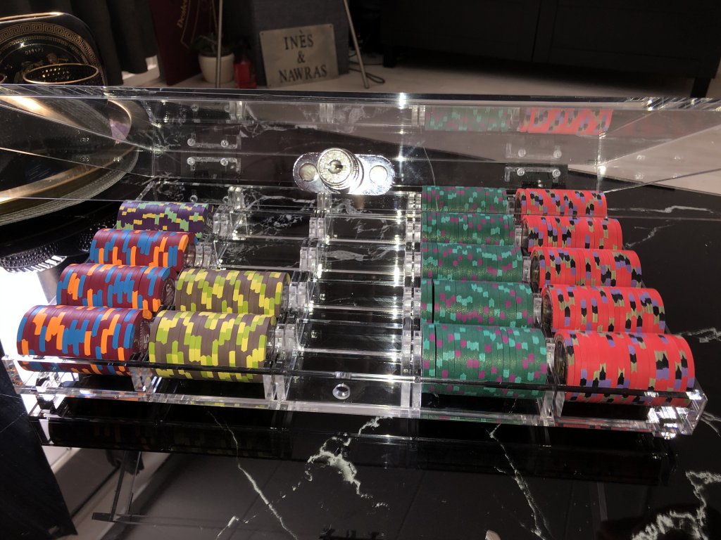 @pokersepp hooked me up with it. This thing is really recommended. Can’t stop looking at it , looks so clean and professional. The lock features a very nice click in to lock feature , and then unlock with the keys. I believe there is also a 600 chip version. Mine is the 500 , will order 1 more for sure when they are in stock again.