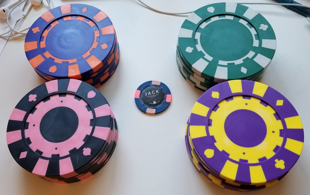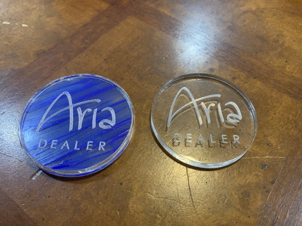 The super large chips will be used for a wall display for winners of my annual tournament and to commemorate players who have passed away (I prefer playing in my 20s when that wasnt even a thought).