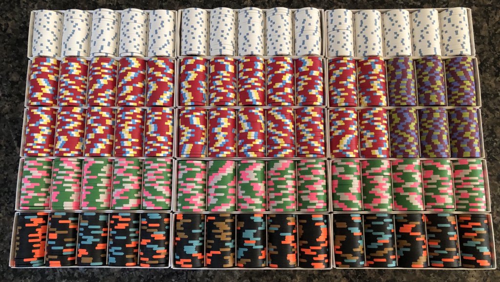 I've never been able to procure 60 blaze orange primary 1000's at a reasonable price to complete the set. Can't bring myself to pay more than $10 for a chip and put it in play. Perhaps 43mm chips are out of my league.