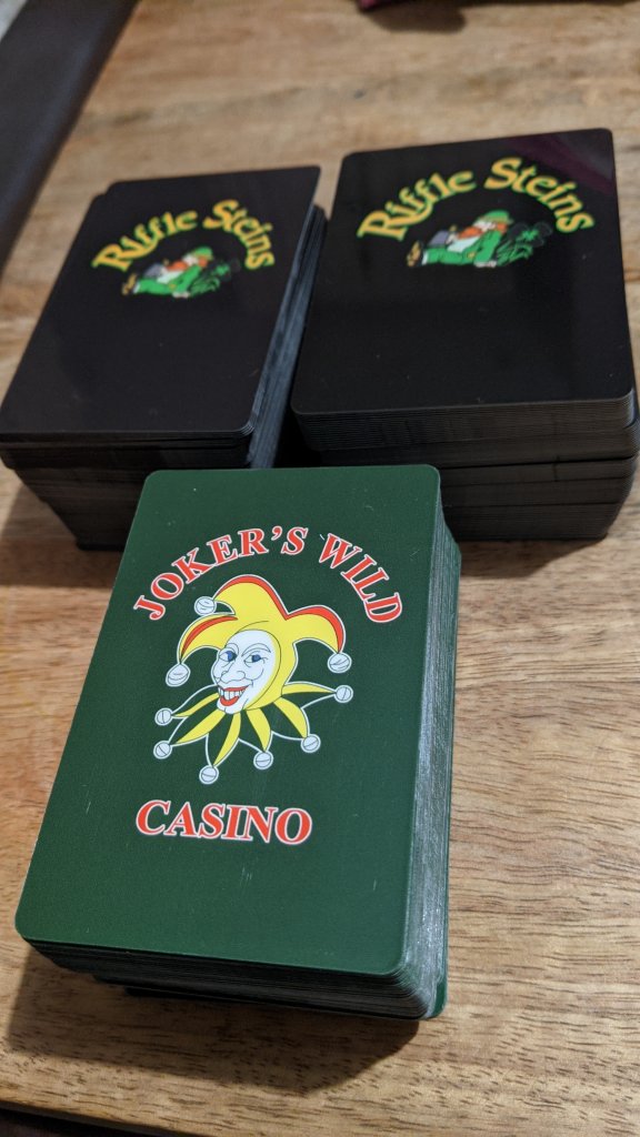 So here's the current 1500 chip set. I had 14 barrels of 5's when asking around for one more barrel (was looking for 15 of each denomination, excluding 500's) but 24 barrels worked out better. 480 reds and 120 purples can be divided quite well.