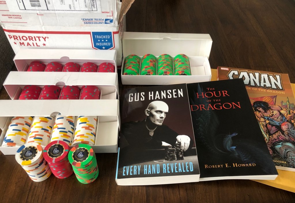 Isle Cape Girardeau chips -- which included the last rack of $1s I needed to complete my mixed Missouri casino set -- a book written by my hero, a Conan novel and a Conan graphic novel all arriving at the same time equals a good mail day at the household.