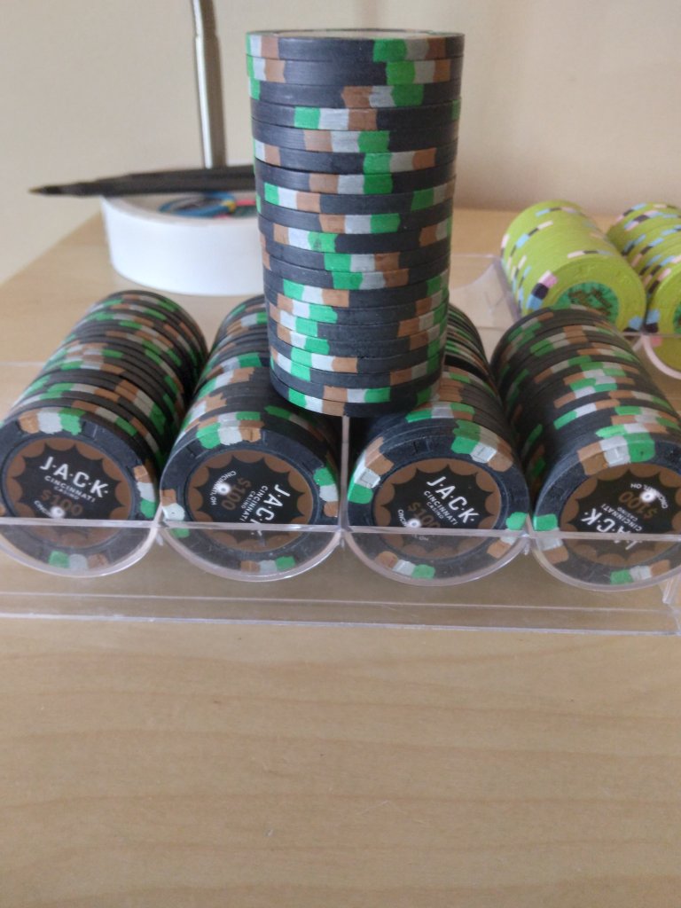 Thanks to @kmccormick100 and this rack of 100s, I'm starting to build a ghetto fabulous cash set. Jack 100s. Venetian 2s as $25. Boulder 1s. And for the 5s, either aria or bellagio. Probably aria.