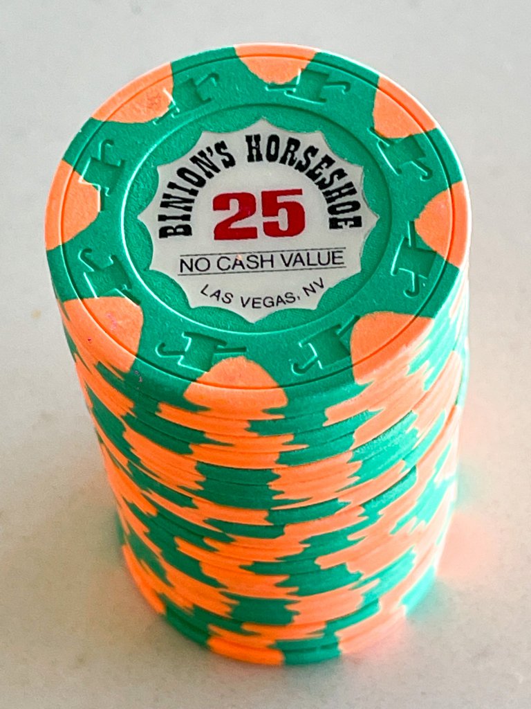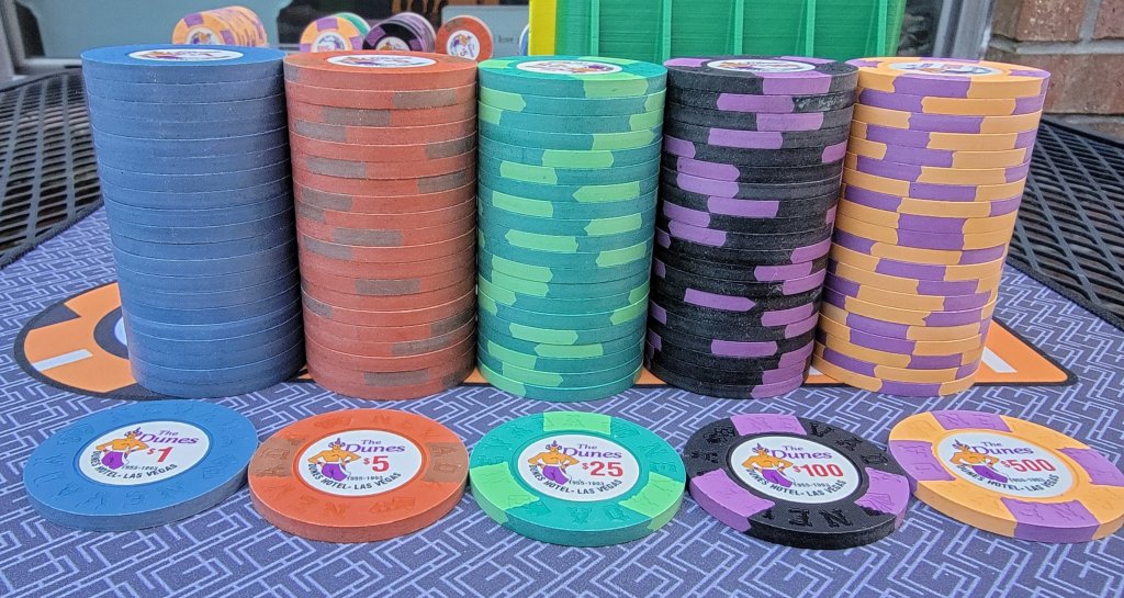 But where's the BJ table?Not from the mail, but I have to share these. Easily the coolest chips I have owned to date. I purchased them from a neighbor who also FORCED me to take an old Blackjack table from The Sands hotel off his hands and out of his house so his wife can reclaim the room - LOL! From what I have been hearing, there are not too many playable sets of these Borland commemorative chips that were made by ASM in the early 1990s. My neighbor got them at a store in Vegas in 1996, so I assume he bought them directly from Jim Borland. Cool piece of poker chip history. There are over 550 chips in the set. Unfortunately no $1000 or $5000 chips.