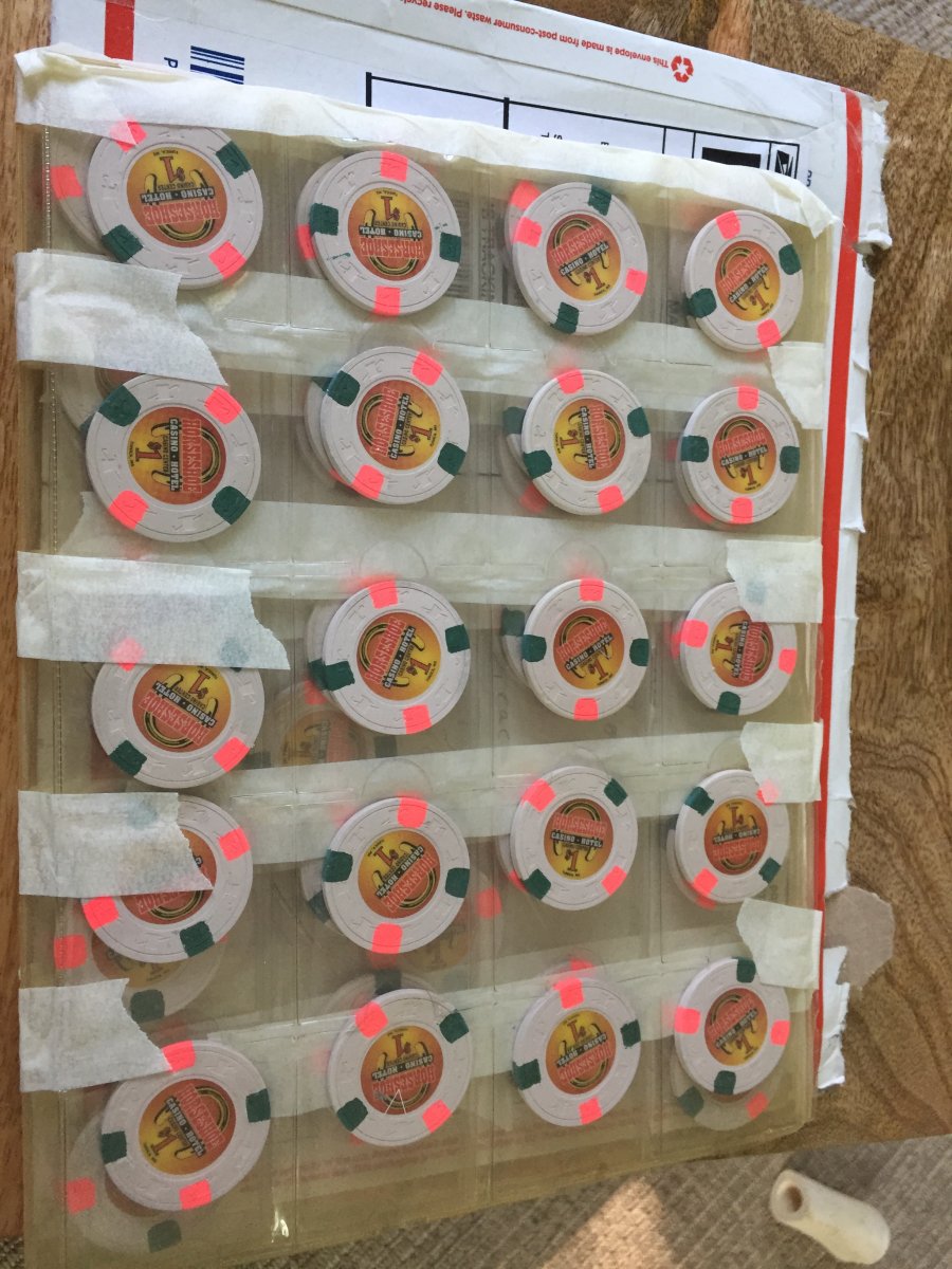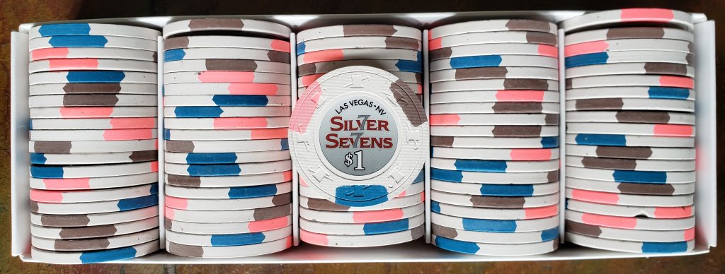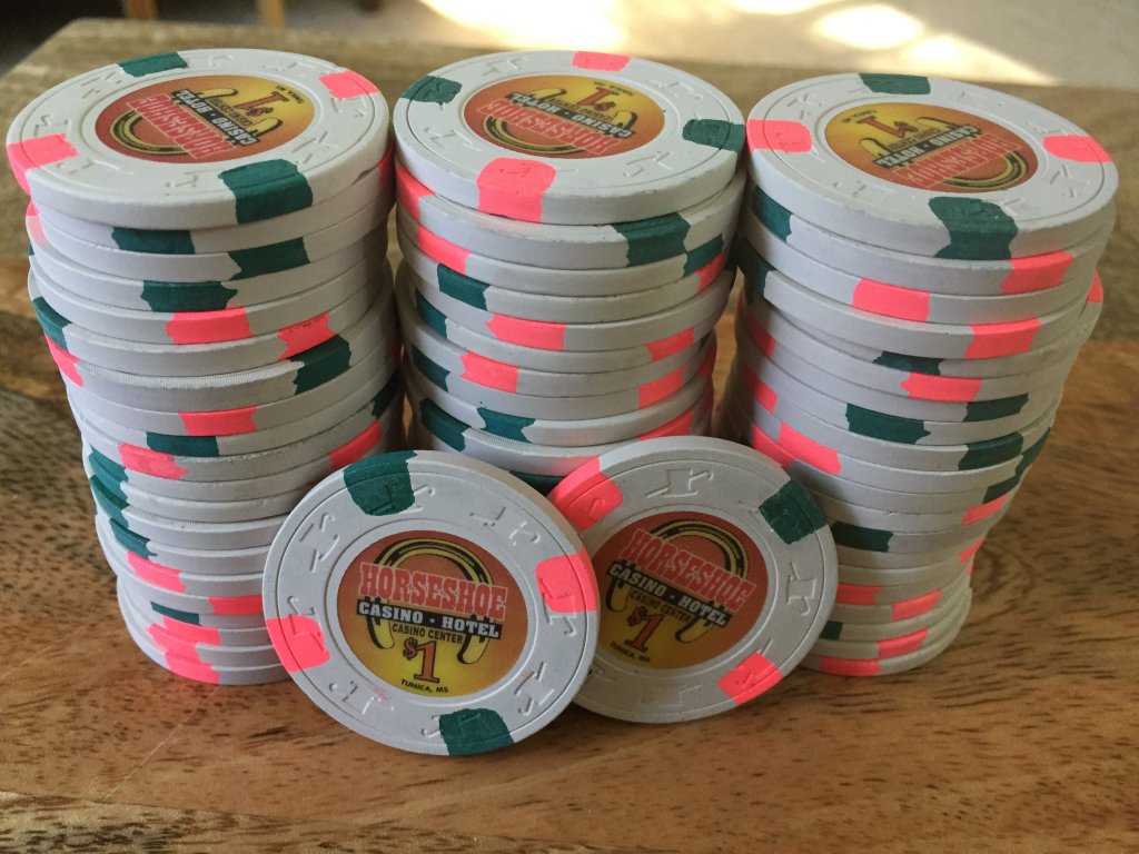 62 Horseshoe Tunica $1’s. Sort of an impulse buy on eBay. They are used, but in better condition than I was expecting. Mostly square corners, lots of cross hatching left, and very nice textured inlays. I know nothing about these, but I’m guessing they’re leaded as they feel noticeably heavier than my Cleveland $1’s. Beautiful chips.