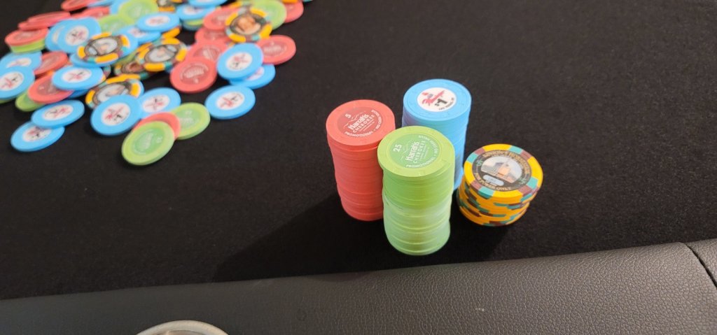 I always try to throw some extra goodies in when space allows. Those mirage are two of my all time favs, thunder valley is day blue, and figured u might like to see the cinn $1 chips as they are one of cheapest casino used right now. That 7 mile casino plays PLO in San Diego and owns the sister club Stones in Sacramento. They were part of the big Mike postle cheat scandal and I like the 7/red color combo. Hope u enjoy