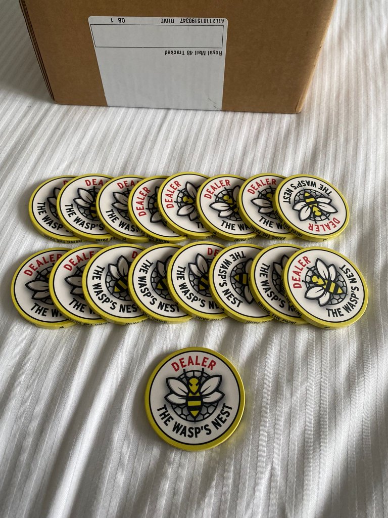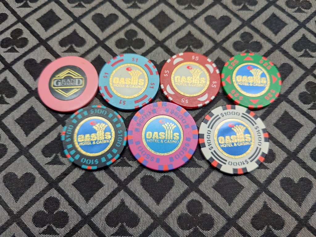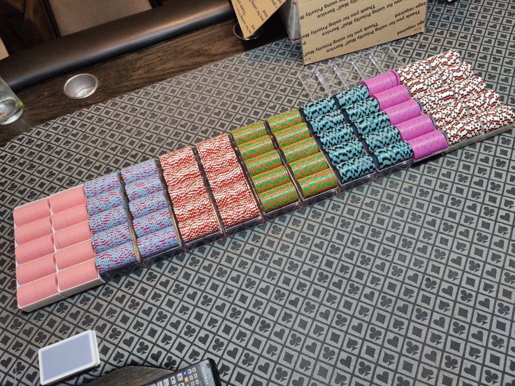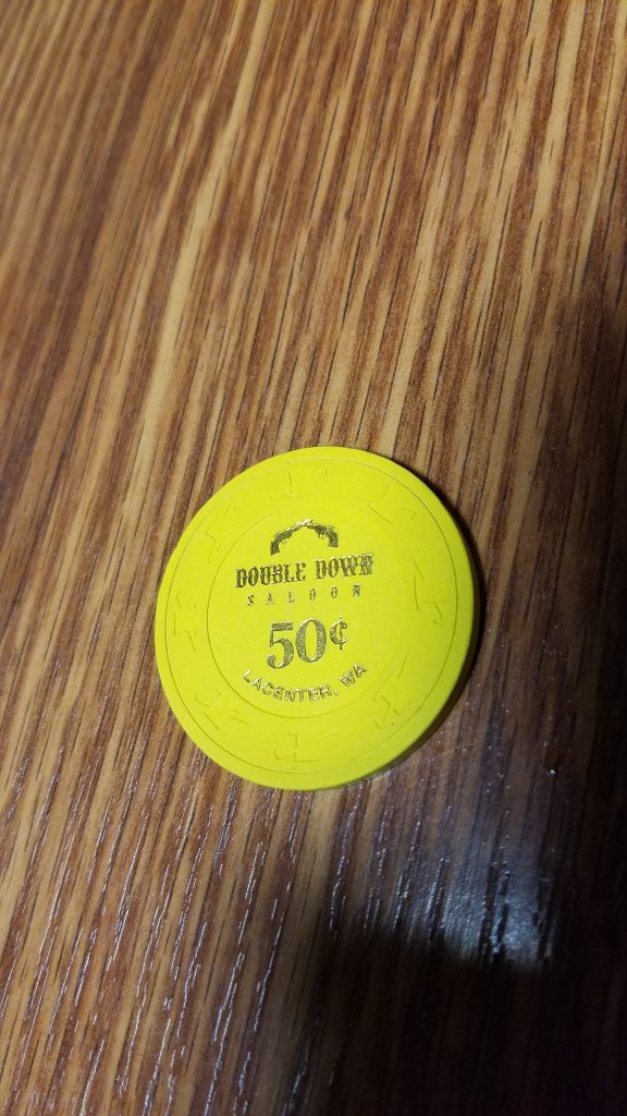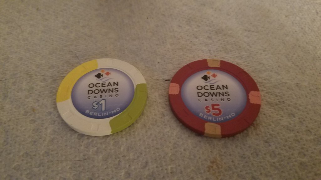 Halarious, on our hunting trip this weekend with my pops who has been on a good run playing 3 card poker at Maryland and Delaware casinos (up over $3k) he was talking to Brie about Ocean Downs casino near Ocean City, MD. She mentioned that she is very interested in the $1 chips... he said the last few times he has gone to cash in they have been having issues with the digital payout machines and the regular cashiers lines have been awful! Realized he forgot to turn in a $1 and $5 he had in his pocket... went and grabbed them from his SUV and handed them to Brie. Got them cleaned and oiled this evening.