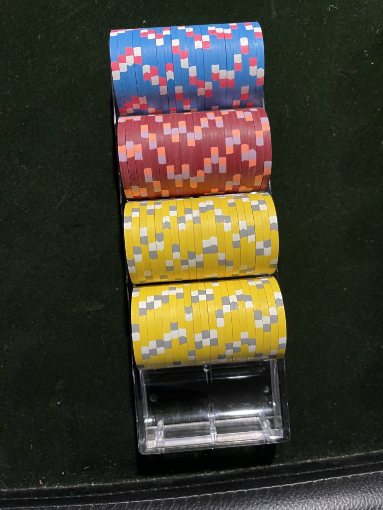 Then more recently I won another Hold’em hand to earn the privilege of buying another 400 piece AS tourney set that @Jeevansluck had for sale. I ended up grabbing an extra barrel of T1k and T5k off him and somehow talked him into letting go of his barrel of T5s!!!