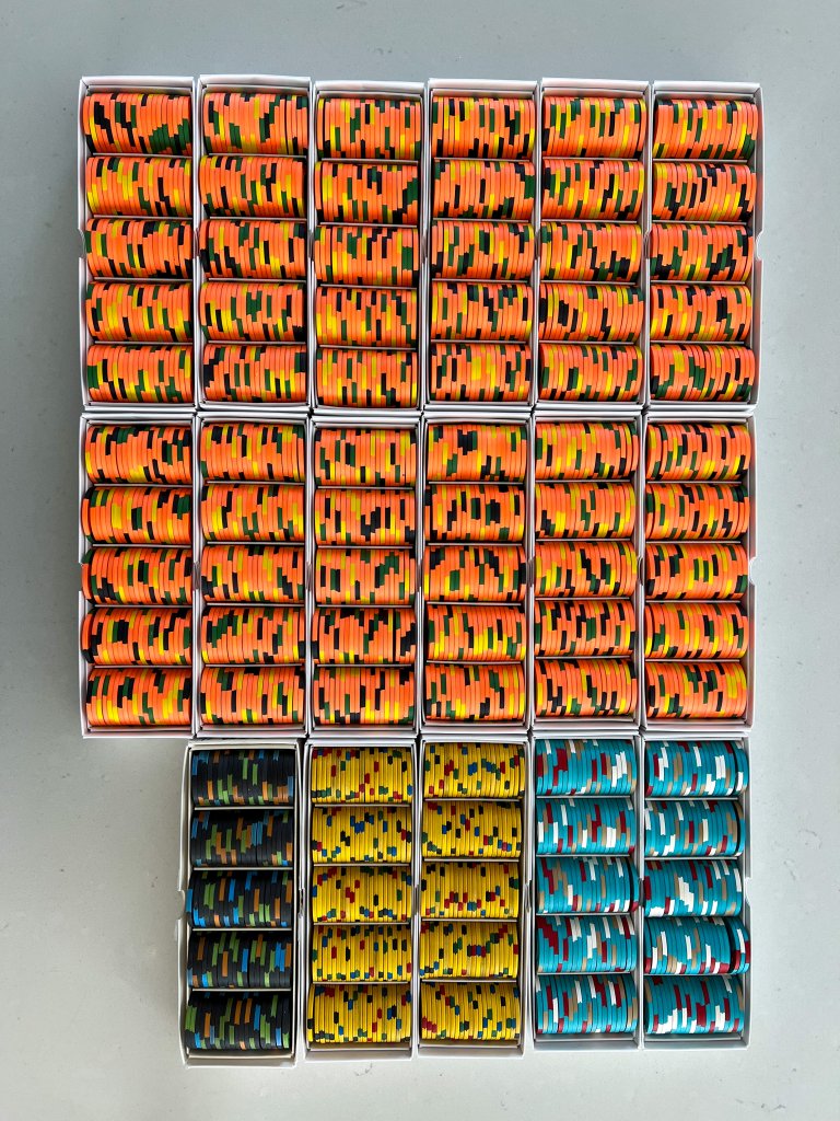 My tiny 105 chip 3 player cash set came in. I wanted to try out these Abbiati's to see how good they are. I am not disappointed :)