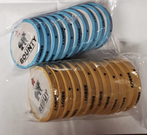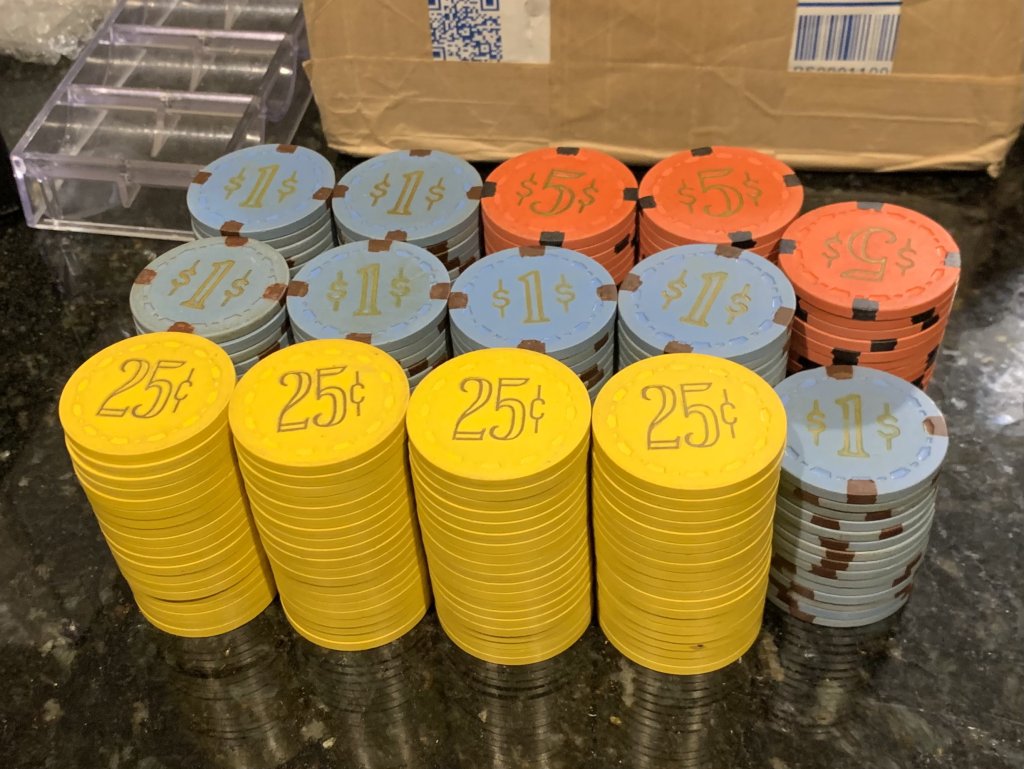 These chips are gonna make a perfect Tigerhawk Card Room heads up set! Now to get the labels designed and printed! And a couple custom extras to boot! Thanks @Bad Toad !