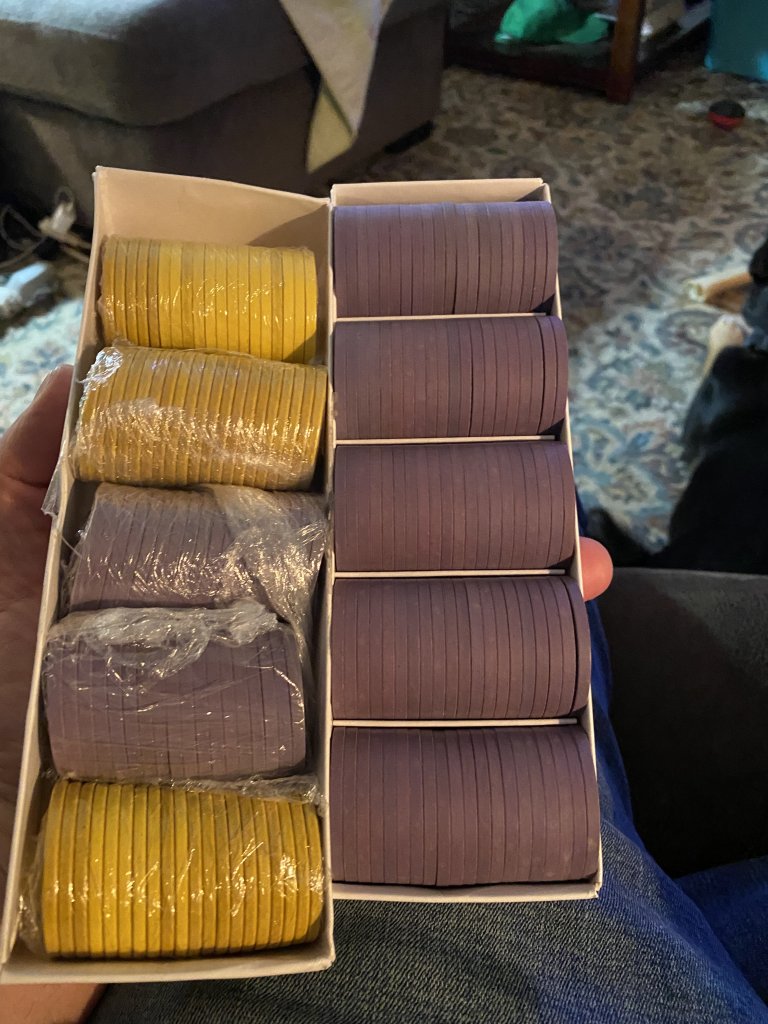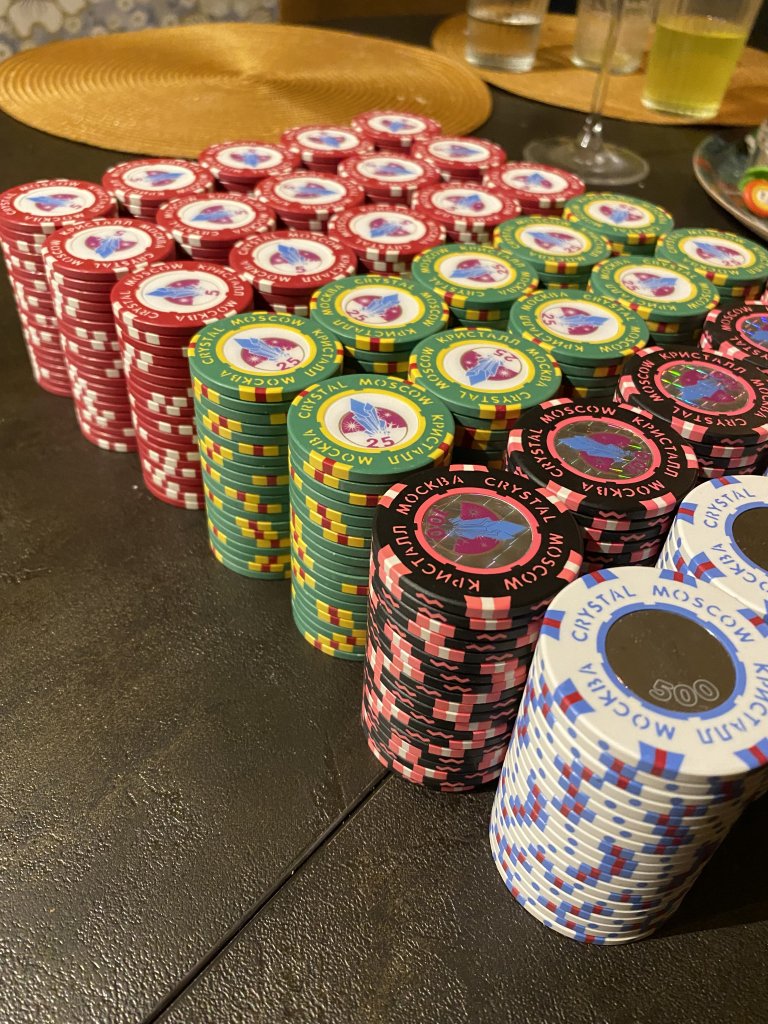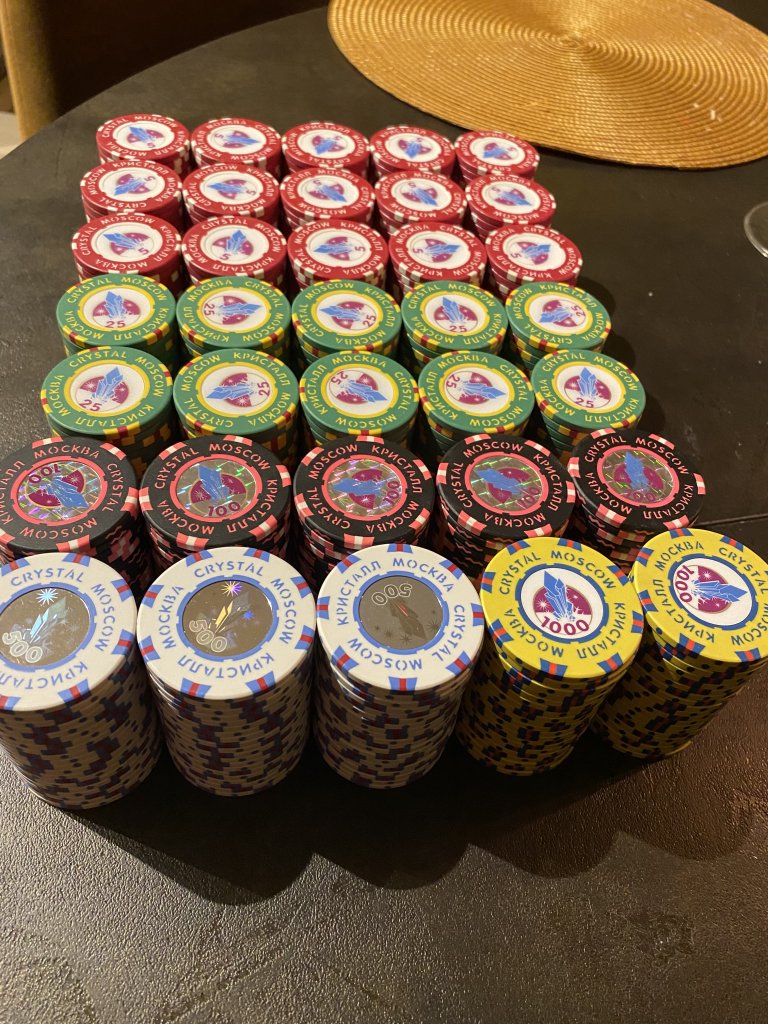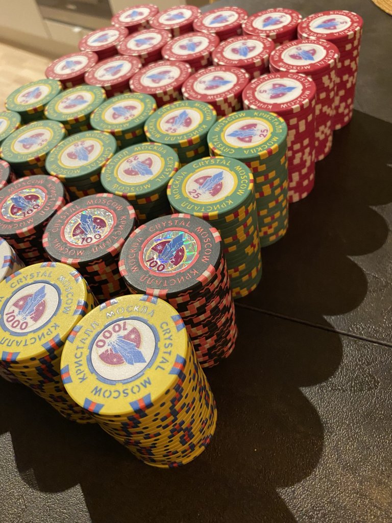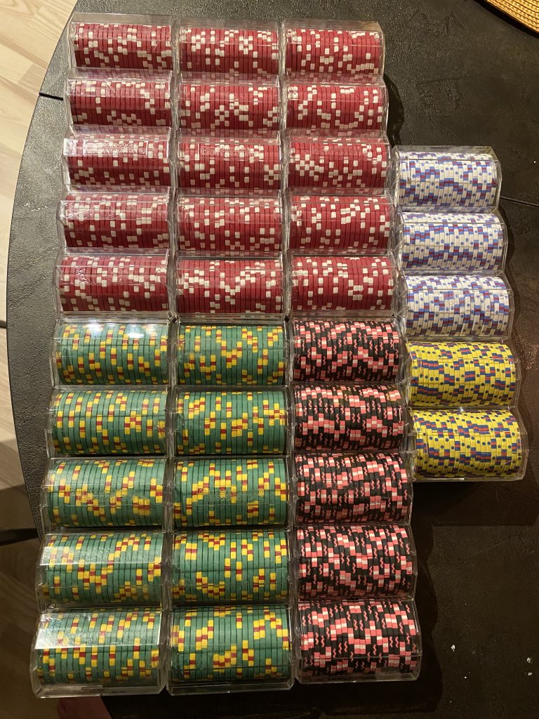 Actually the 500 and 1ks are 45mm, the 100s are 43mm and the 5/25s are 39 or 40mm. Was a little worried it would tilt me with three different sizes but I don’t think it will. Most stacks around the table will be heavy on 5s and 25s and eventually 100s but probably just a few of the biggest denoms