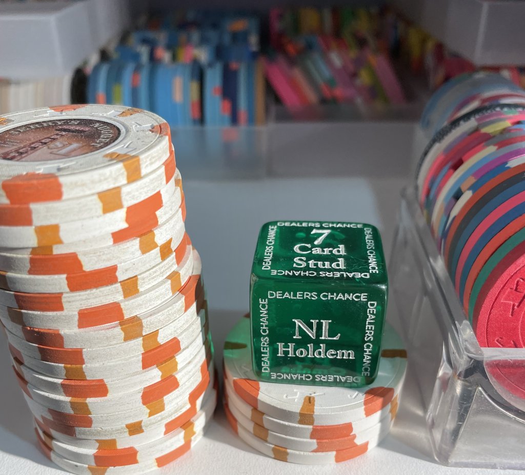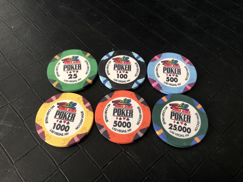Faux printed on. It is a blank textured chip. I was thinking about doing it on a card mold chip, but the inner circle is slightly smaller than the original (1” on card mold, real ones are more like 1 1/16”). So I decided to make a fake/faux RHC pattern on it. I think it came out pretty freaking good.Are those RHC stamped in or printed?