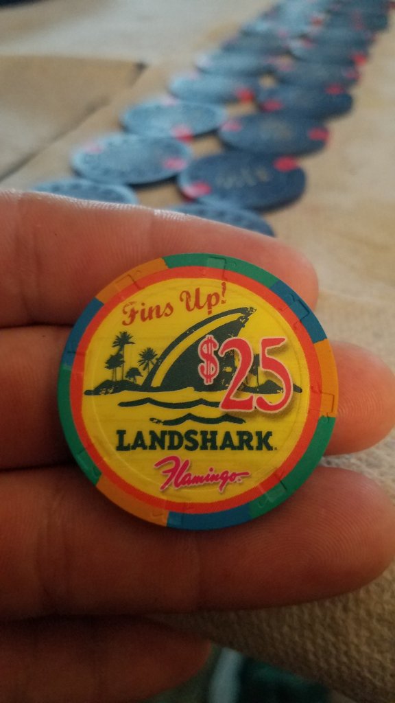 Wow that chip is AMAZING. No idea the $25 had a landshark logo on the back. Congrats Ben!