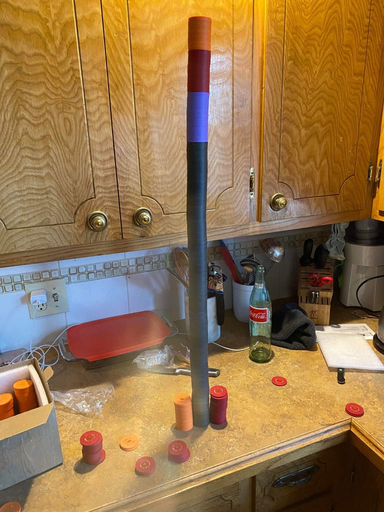 Benfoldsfive... that woulda worked.Always more $5s... but stacked $1s aren't very intimidating. We usually go twp barrels of $1s then chip em up and throw them back in the bank... but then again the games we have been playing lately the $1s are just for looks... $.25 - $.50 - call - call - raise to $20 - raise to $40!