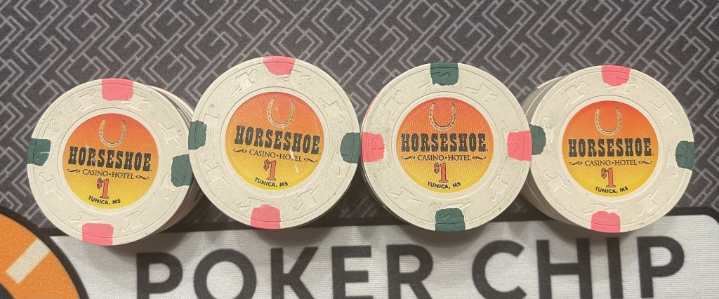 Thanks @casinochipper22 for the lovely minty CC $1s!! Great chips! They are so tight in my 4200 rack, I can turn them upside down and not one moved! Now my biggest decision is to make into seat markers or bounty chips. One set is going to be one or the other. My HS Tunicas is the other choice for either seat markers or bounty chips.