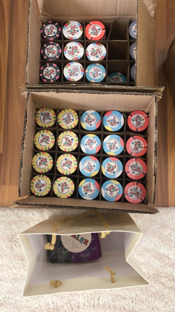 Custom dealer button and bounty chips to go with my EPT tournament set! Excited to get these in play soon. Very happy I have a 'complete' set now. Both items from BRPRO.