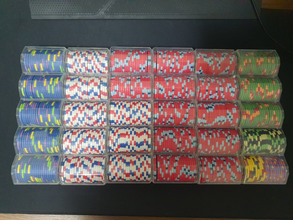 Long story short, after months of seeing so many nice chips. I finally decided my own semi custom set - 43 mm Aria Cards Mold cash set. After reaching @Johnny5 and got his kind permission, I asked Tina to produce my small order. And then I received the beautiful set today (just about 3 weeks through my mate's furniture container). Definitely love the card mold and the colours are nicer then I expected! Can't wait to get them on the table this weekend.